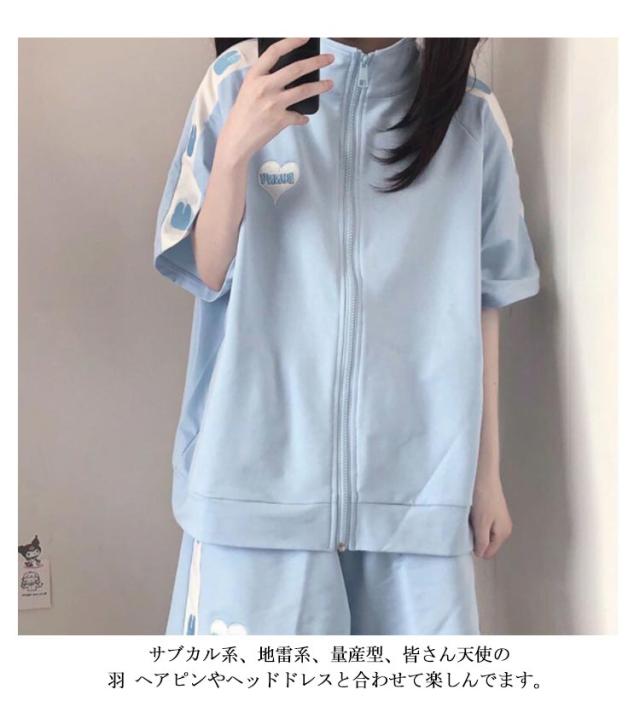 | 半袖パーカー+短パン 2点セット。 サブカル系、地雷系、量産型、皆さん天使の羽 ヘアピンやヘッドドレスと合わせて楽しんでます。 これからの時期春夏のマストアイテム! 肌触りの良いさらっとした 生地で 着心地抜群! 春から秋にかけ活躍してくれ、冬 も インナー をレイヤード することで オールシーズン お使いいただけます。 今からの時期はパジャマルームウェアとしてもgood!! | |