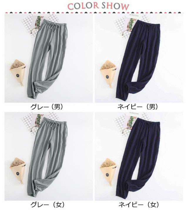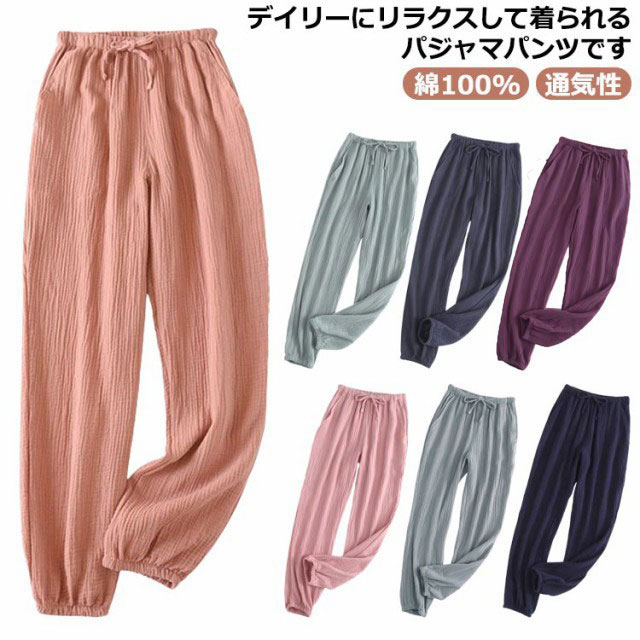 | デイリーにリラクスして着られるパジャマパンツです。 ガーゼ素材で柔らかな肌触り、毛玉になりにくい、長く着用できます。 窮屈感ゼロでゆとりを持たせたデザイン、履きやすく着替えることも便利。 ウエストがひもとゴムなので楽ながら動きやすいのが魅力。 ふんわりで通気性と吸湿性に優れた素材、乾燥肌や肌が敏感な人にもオススメです。 両側にポケット付き、携帯、鍵、財布などの小物を収納するにとても便利です。 洗濯もしやすいので、リピート率がかなり上がるアイテム間違いなし♪ | |