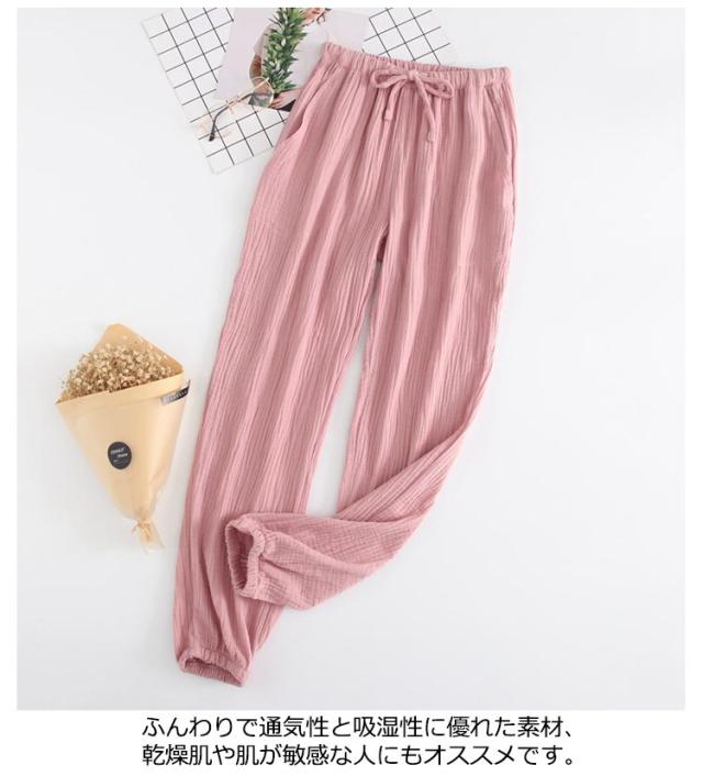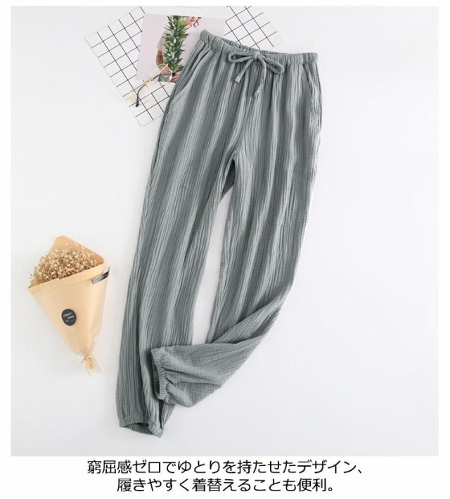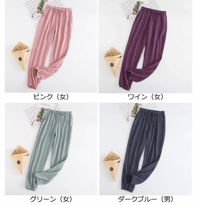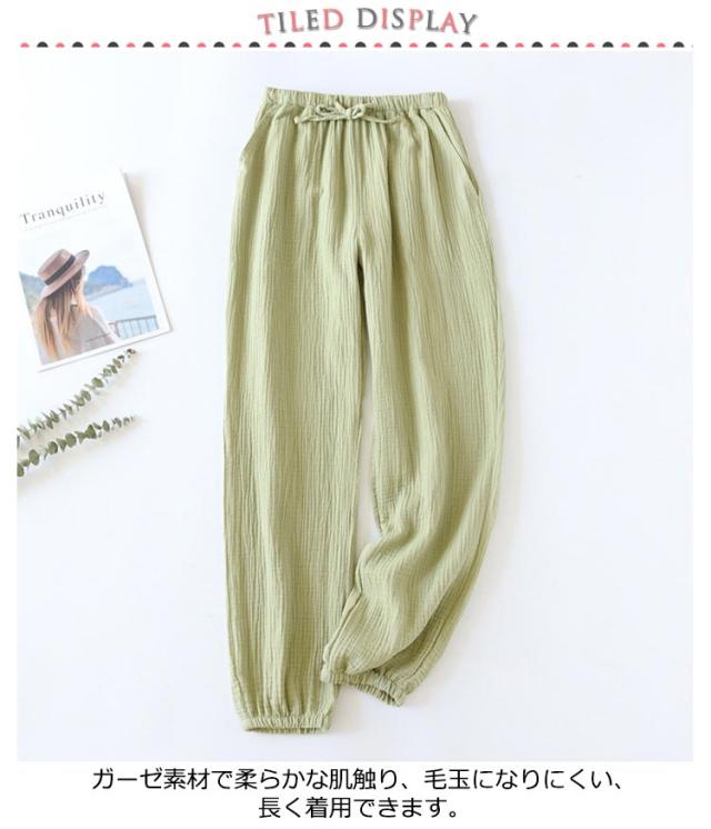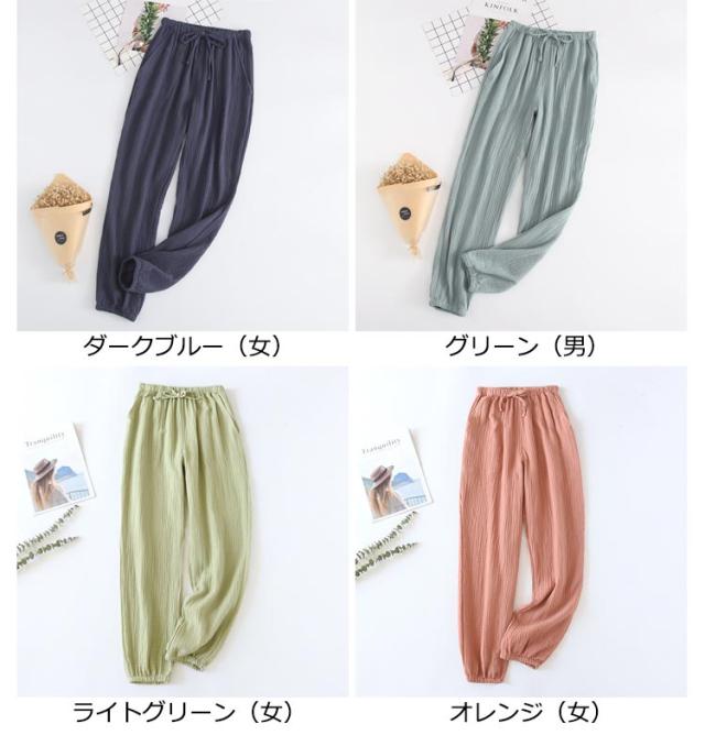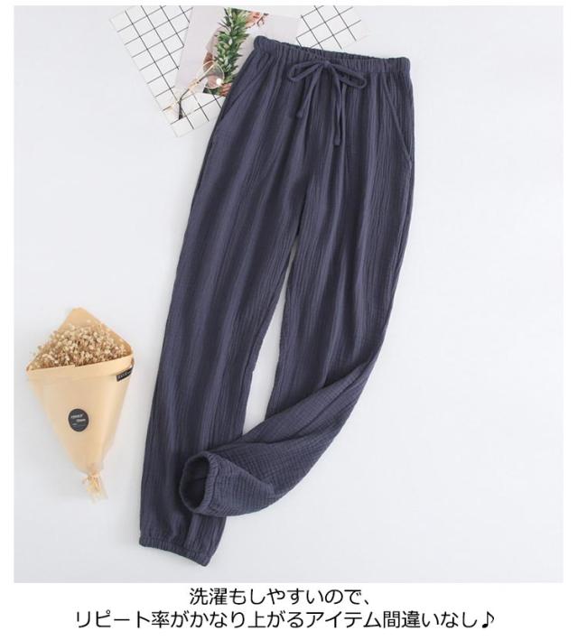 ルームパンツ ガーゼ 綿100% 無地 メンズ レディース ボトムス ルームウェア 長ズボン ゆったり 裾ゴム ポケット付き ウエストゴム コットン ナチュラル お洒落 春夏秋 リラックスウェア ペア 夫婦 母の日 プレゼント 送料無料