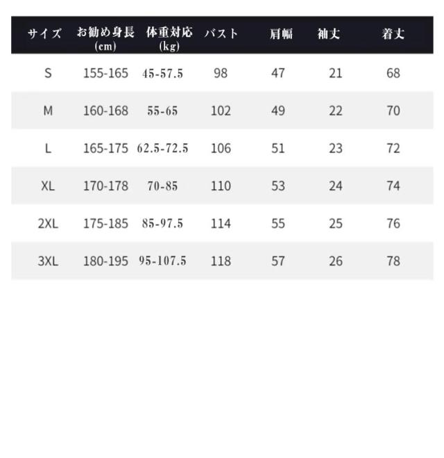 | サイズ | S M L XL 2XL 3XL |