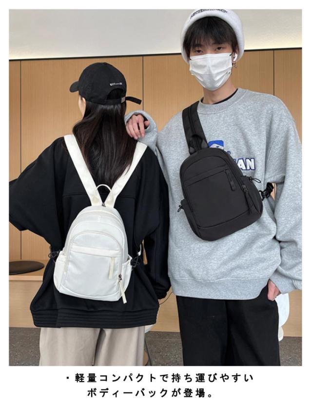 | ・リュックでもボディバッグでも使える2WAYアイテム! ・軽量コンパクトで持ち運びやすいボディーバックが登場。 ・程よいサイズ感で使い勝手◎ ・シンプルなデザインなので、コーディネートしやすく、普段使いにバッチリです。 ・おでかけや買物、旅行まで様々なシーンで活躍するボディバッグ。 | |