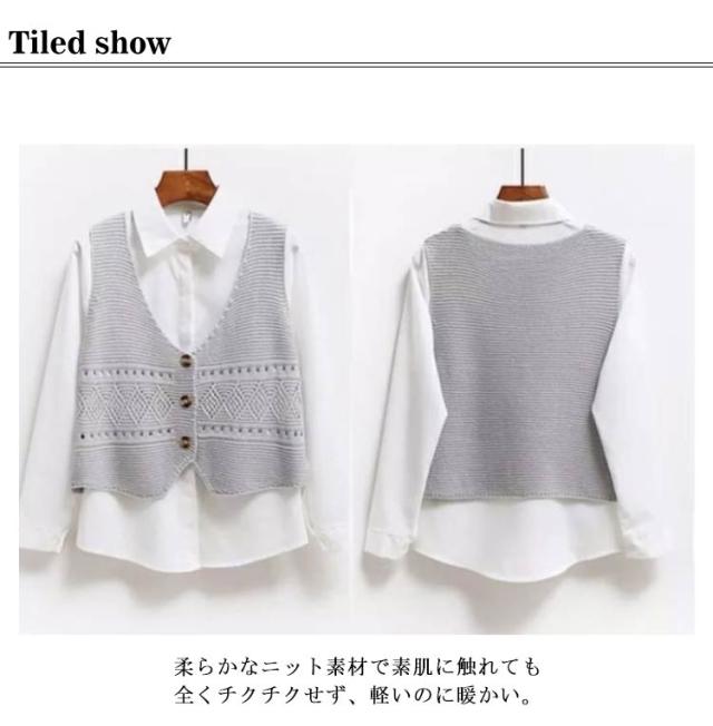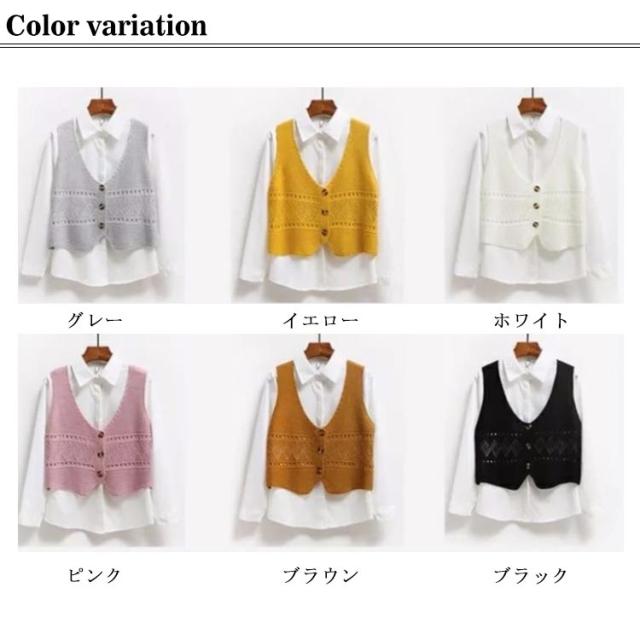 | 全6色×4サイズ!オトナかわいいショート丈Vネックニットベスト いつものコーデに取り入れるだけで簡単におしゃれ感がUP! フロント透け編み模様がさりげないアクセントを添えました。 柔らかなニット素材で素肌に触れても全くチクチクせず、軽いのに暖かい。 インナートップス次第で違い表情を演出する可愛いitem。 | |