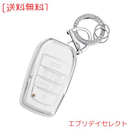 YANMW アルファード30系 キーケース 適合トヨタ アルファード ヴェルファイア30系 後期 前期 キーカバー キーホルダー 6ボタン (キラキラ 、シルバーホワイト)