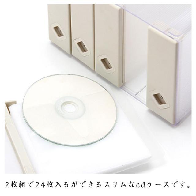| おしゃれに収納できるディスクファイル 120枚収納 CD/DVD/Blu-ray対応 2枚組で24枚入るができるスリムなcdケースです。 不織布のポケットで1枚1枚分けて保管ができます。 おしゃれなcdケースでインテリアにもなります。dvdケースとしても利用可能です。 透明なボディがおしゃれで、ファイルのように持ち運びもできるcdケースになっています。 四隅にはシリコン製の滑り止めパッドが付いており、ぐらつくことなくしっかりと置くことができます。 テレビ台や本棚に並べて収納することで、統一感のある雰囲気になるケースです。 | |