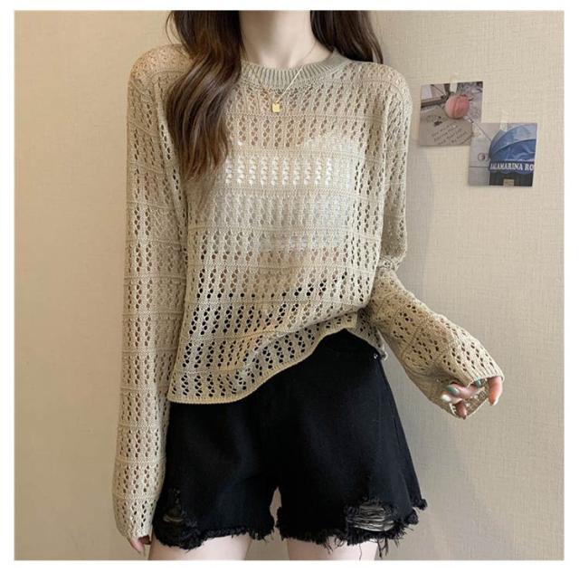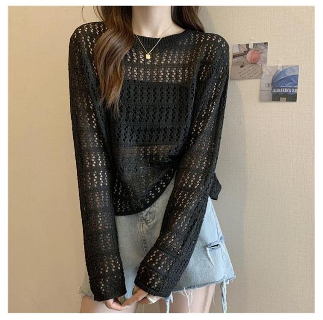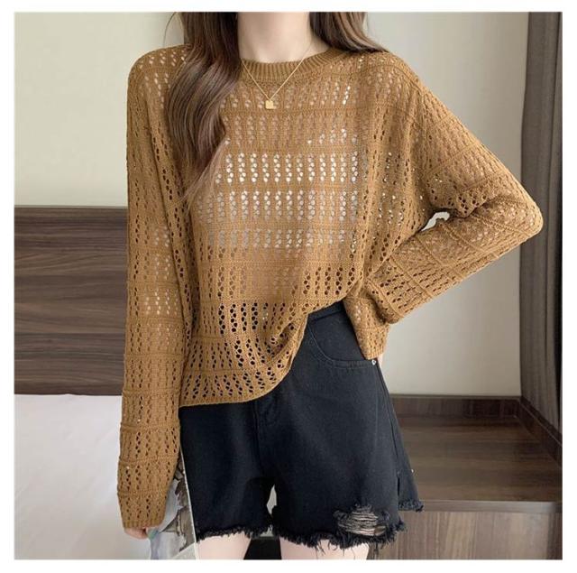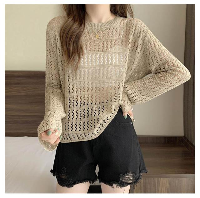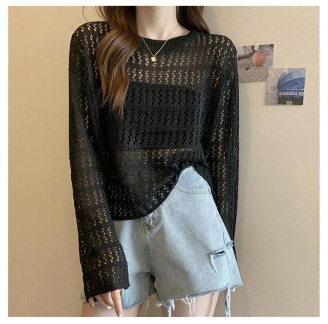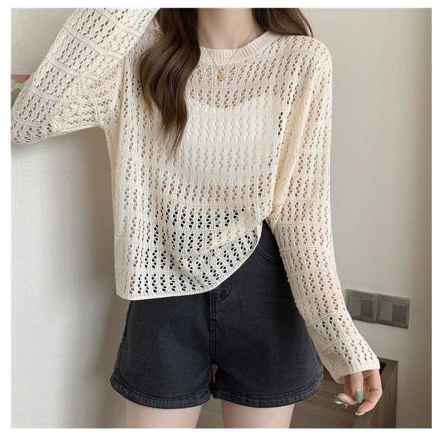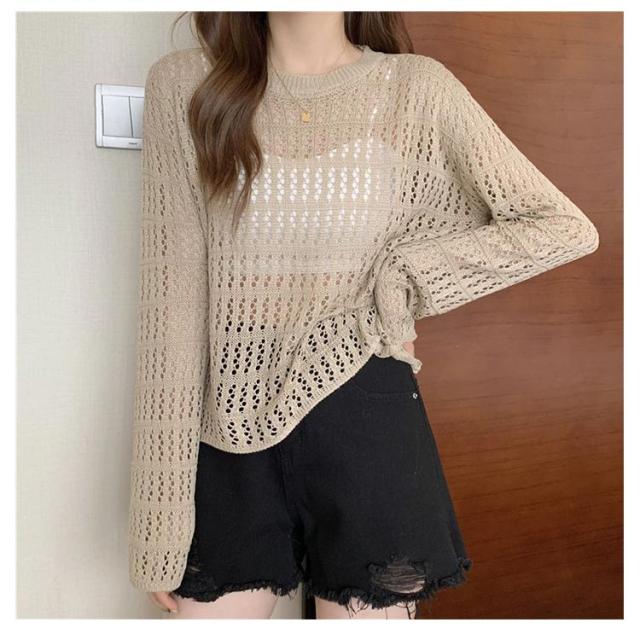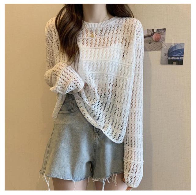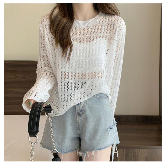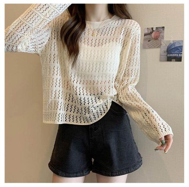 2点セット ニット インナー付き 透かし編み サマーニット 重ね着 レースアップ 長袖 トップス レディース 透け感 カットソー ゆったり 背中あき 春秋 かぎ編み 背中あき ルーズ プルオーバー レイヤード 韓国 トレンド S M L XL 2XL 送料無料
