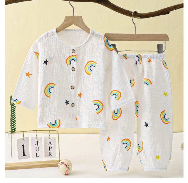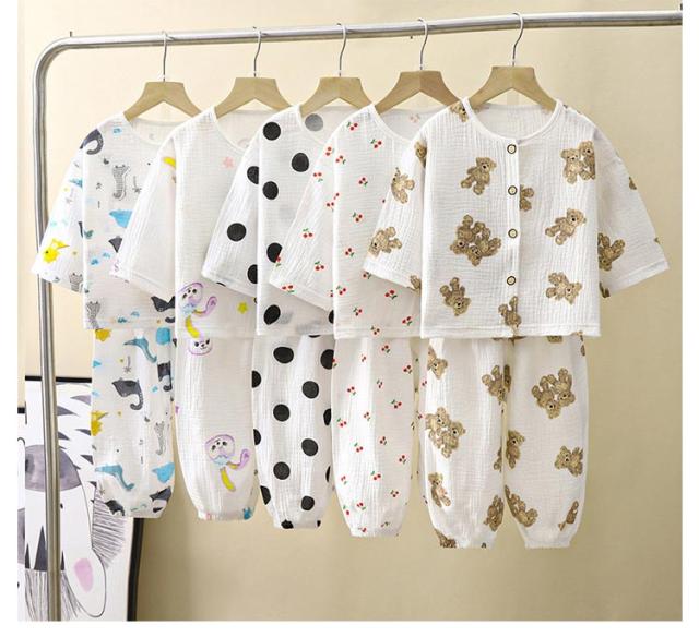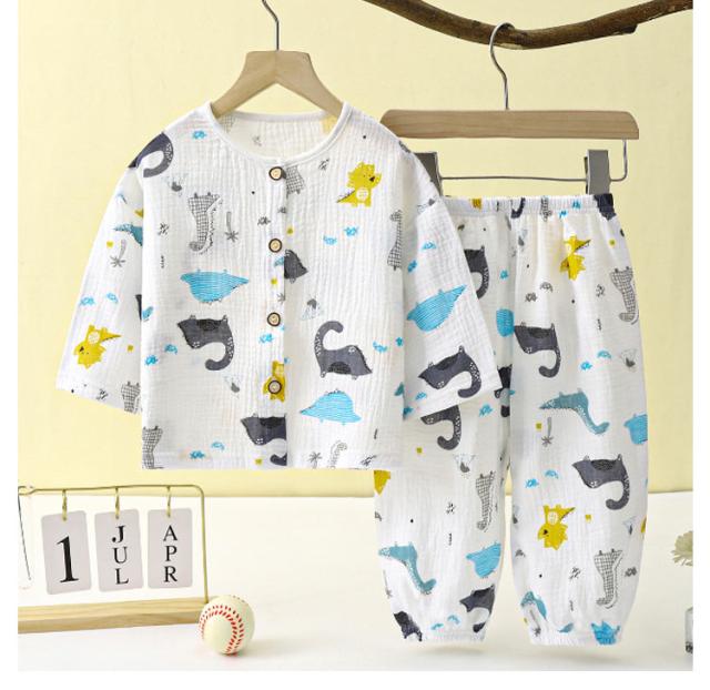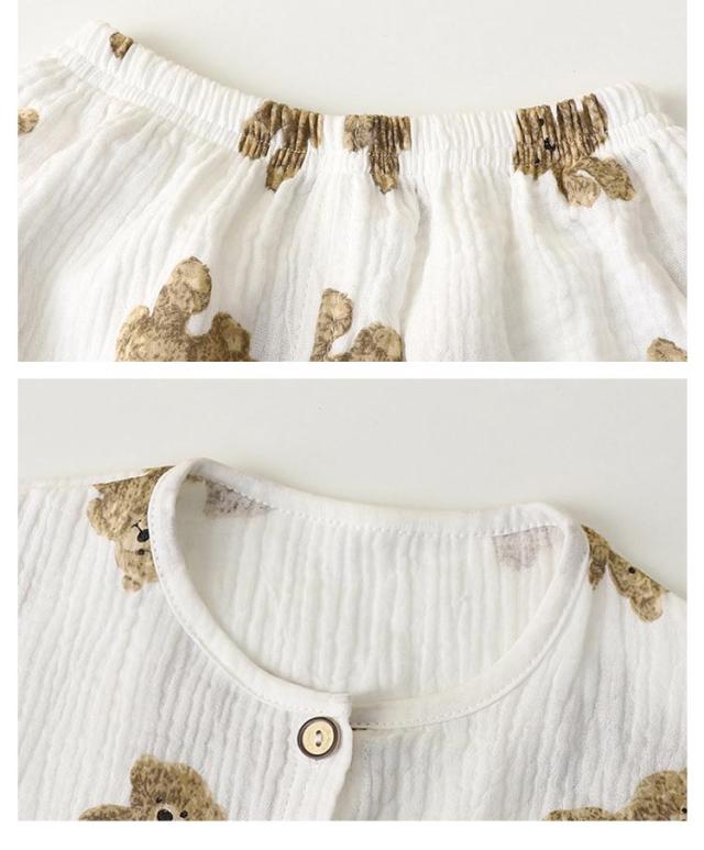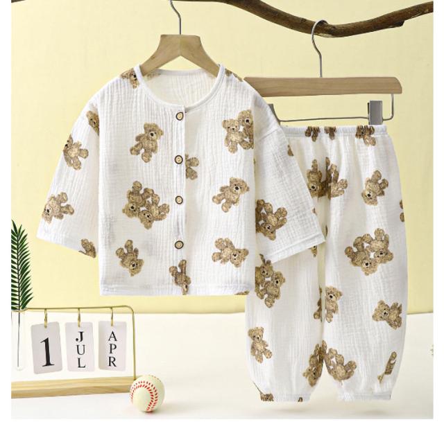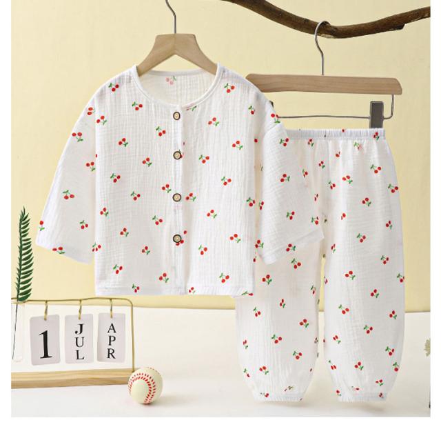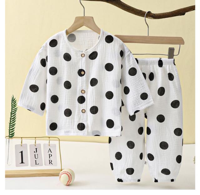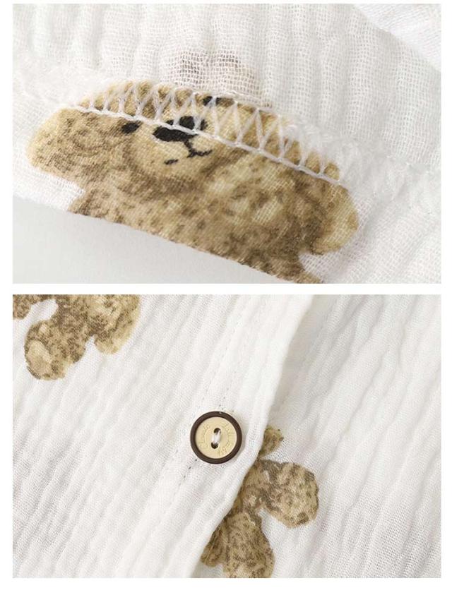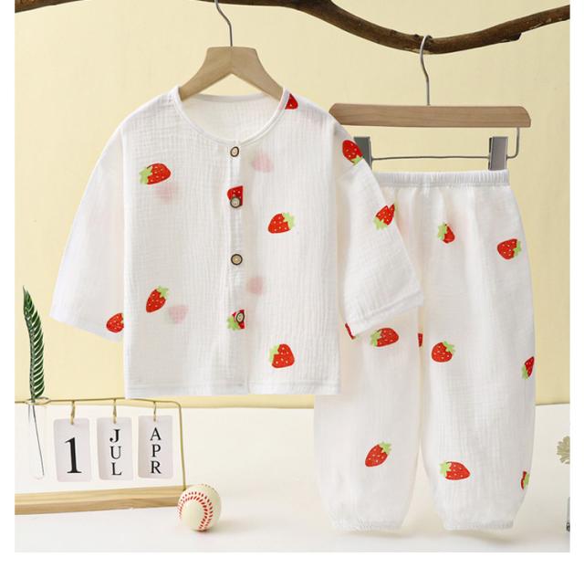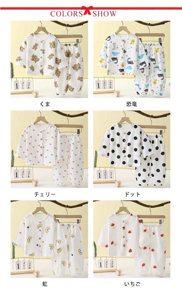 ベビー服 上下セット 女の子 男の子 綿 ダブルガーゼ パジャマ ルームウェア 長袖 前開き 部屋着 トップス ロングパンツ 子供服 子ども服 春 夏 くま柄 ドット柄 いちご柄 恐竜 コットン 女児 男児 80 90 100 110 120 130 140 150