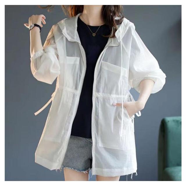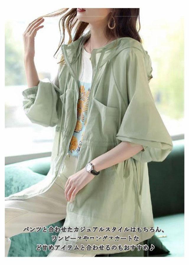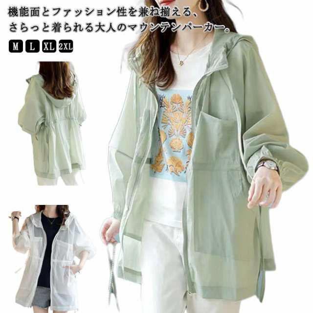 薄手 マウンテンパーカー フード付き パーカー 日焼け対策 UV対策 日よけ対策 ライトアウター ブルゾン マウンテン パーカー アウター レディース パーカー ジャケット ミリタリージャケット アウトドア 体型カバー グリーン ホワイト