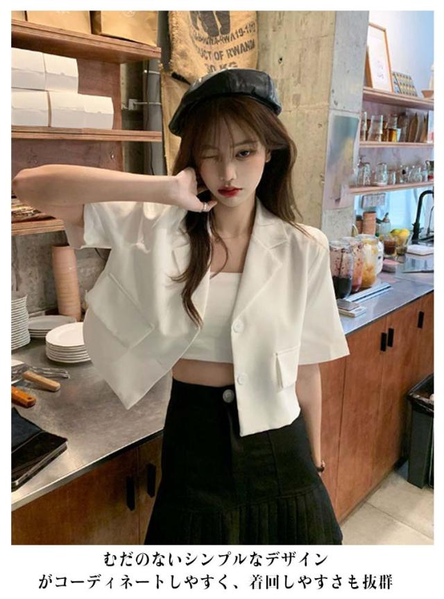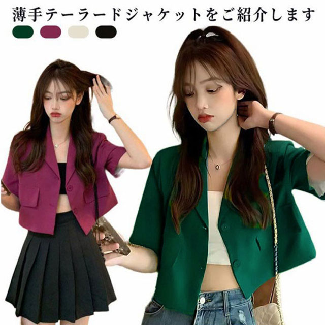 サマージャケット レディース 半袖 ジャケット 涼しい 接触冷感 薄手 ショート丈 テーラードジャケット 夏 シャツジャケット 無地 アウター ブレザー オフィス 通勤 カジュアル 大人 シンプル 春 夏 春夏 サマー 上着 羽織 前開き