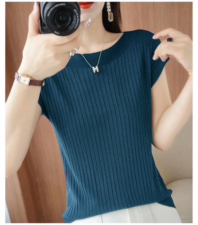 フレンチスリーブ トップス レディース ボートネック ニットTシャツ 涼感 サマーニット 半袖 冷感 リブ ニット tシャツ ストレッチ キレイめ 通勤 春 夏 秋 送料無料