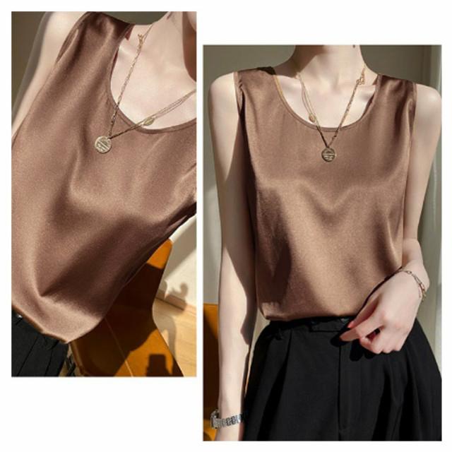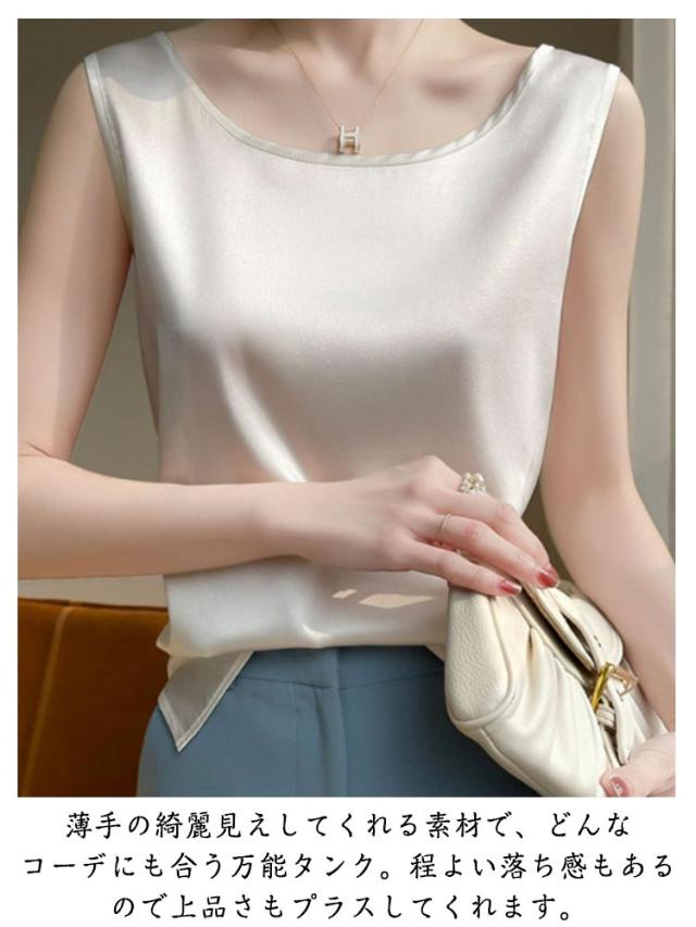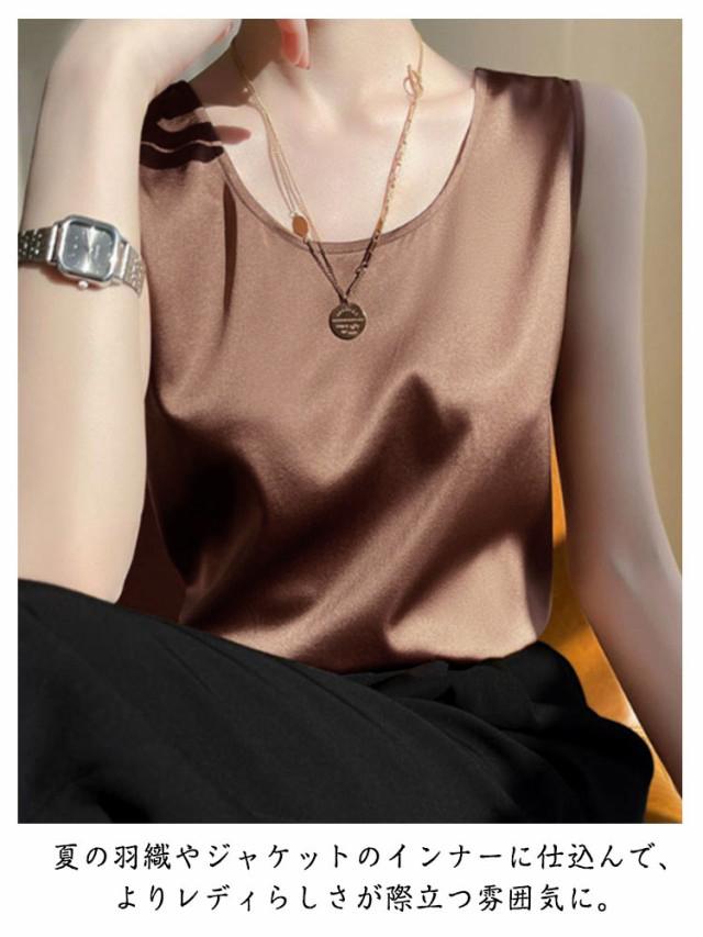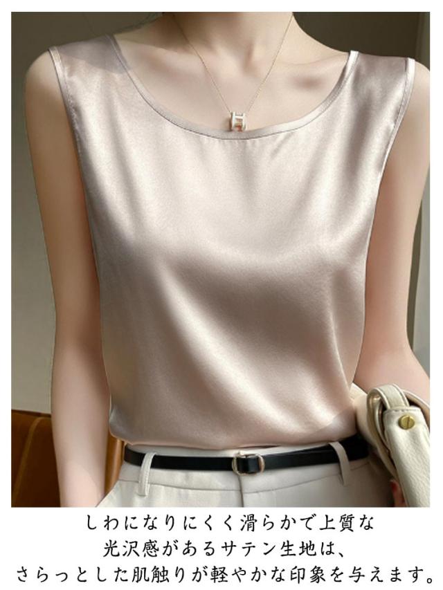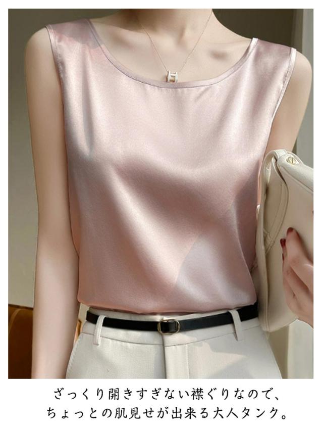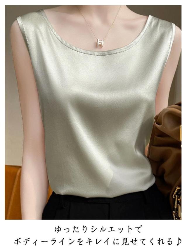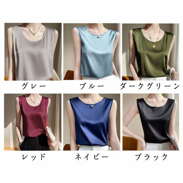 シルク調 タンクトップ ラウンドネック レディース サテン ブラウス 大きいサイズ ショート丈 ノースリーブ トップス インナー 上品 重ね着 肌着 光沢感 ツルツル 透けない ブラ紐隠し 薄手 ゆったり 大人 無地 OL オフィス 春夏 母の日 プレゼント S-3XL 12色 送料無料