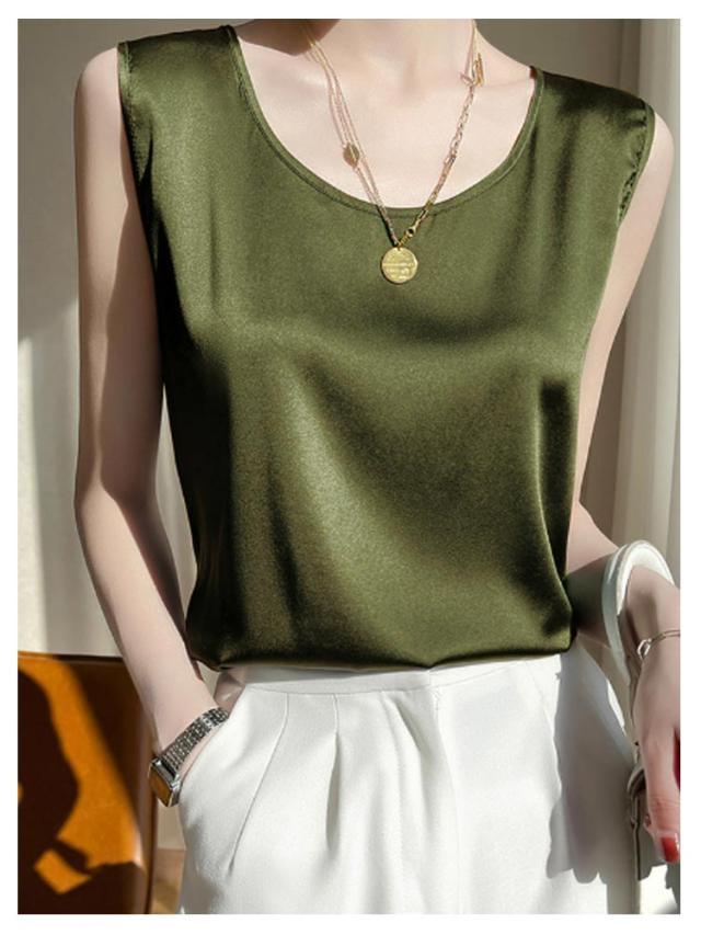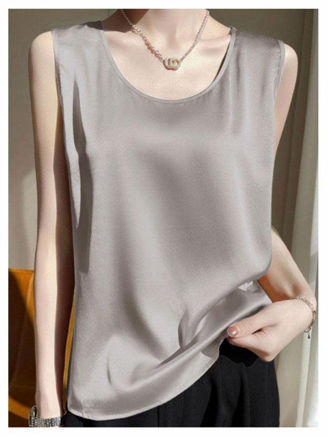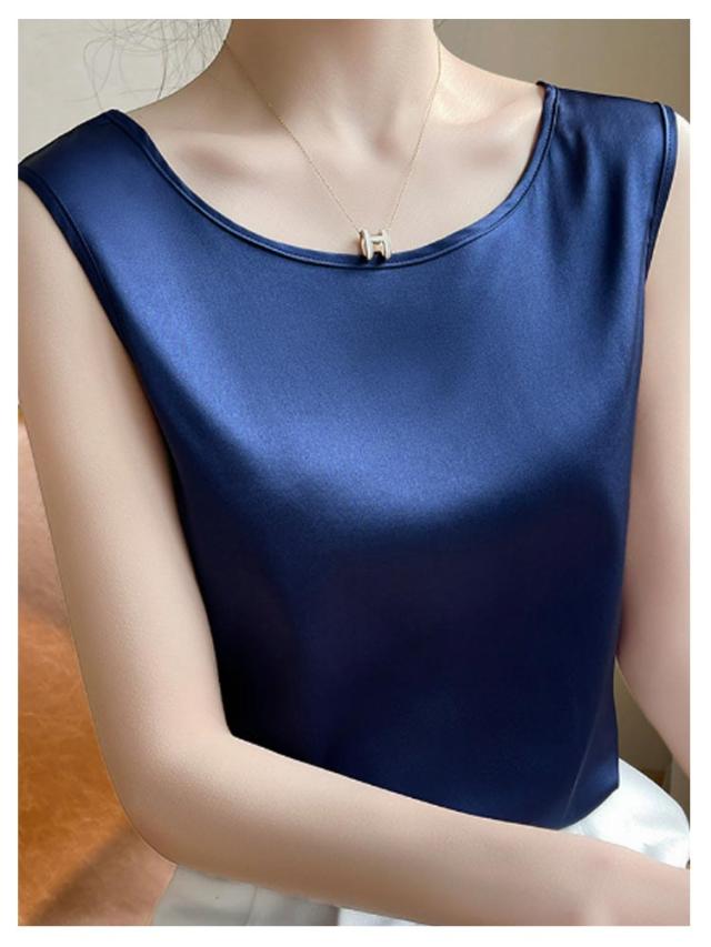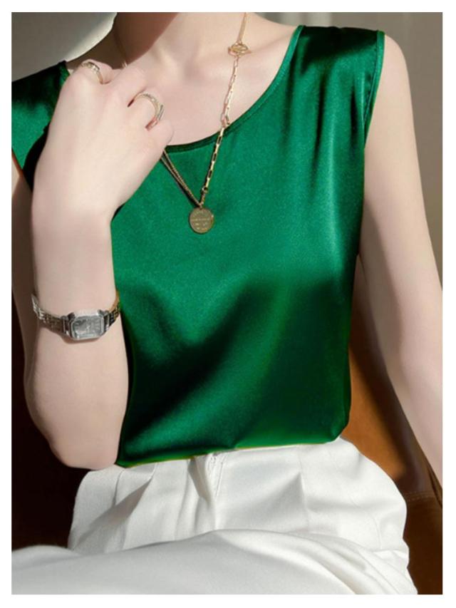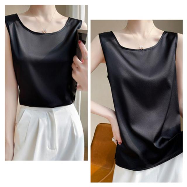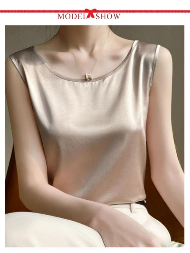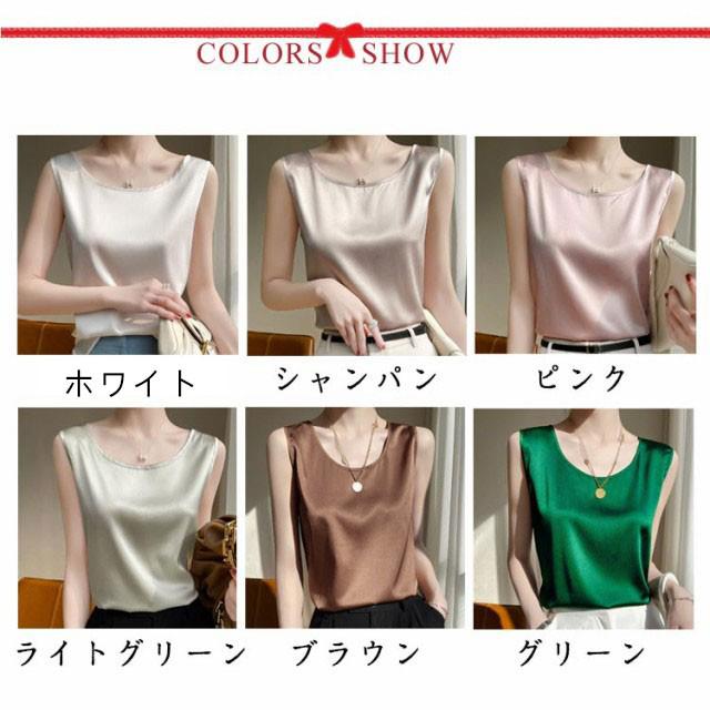 シルク調 タンクトップ ラウンドネック レディース サテン ブラウス 大きいサイズ ショート丈 ノースリーブ トップス インナー 上品 重ね着 肌着 光沢感 ツルツル 透けない ブラ紐隠し 薄手 ゆったり 大人 無地 OL オフィス 春夏 母の日 プレゼント S-3XL 12色 送料無料