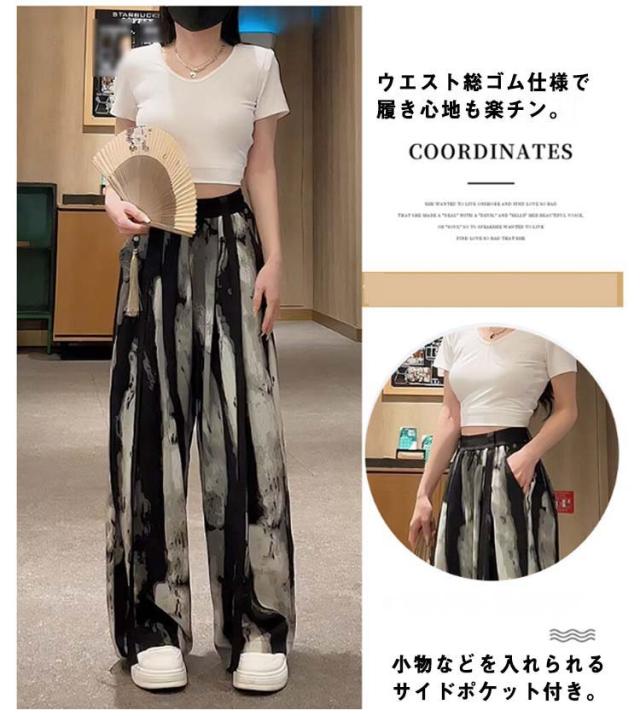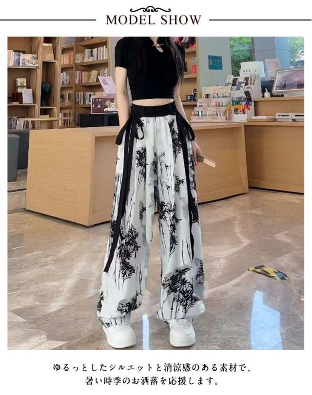 柄パンツ ガウチョパンツ 涼しい ワイドパンツ レディース 柄 ボトムス ストレートパンツ ロング丈 ポケットあり 楽ちん おしゃれ きれいめ リラックス リゾート 女子 脚長効果 選べる着丈 個性的 エスニックファッション アジアンファッション