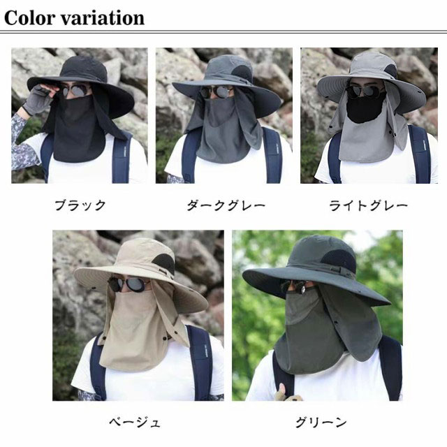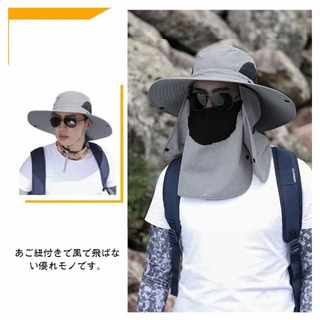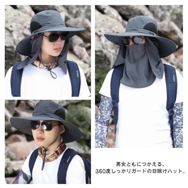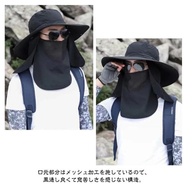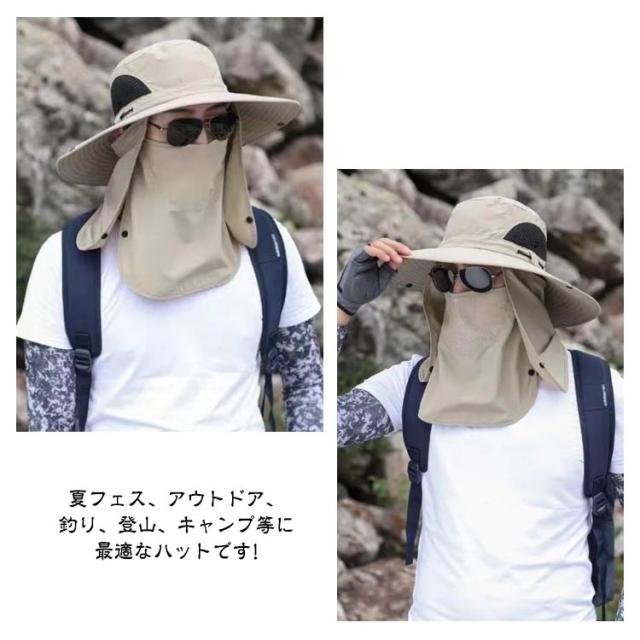 サファリハット 帽子 メンズ レディース UVカット 撥水 つば広 紫外線対策 遮光 大きいサイズ 首ガード アドベンチャーハット アウトドア 登山 あご紐 夏 キャンプ ハット 男女兼用 日除けカバー フェス 折り畳み 農作業 釣り