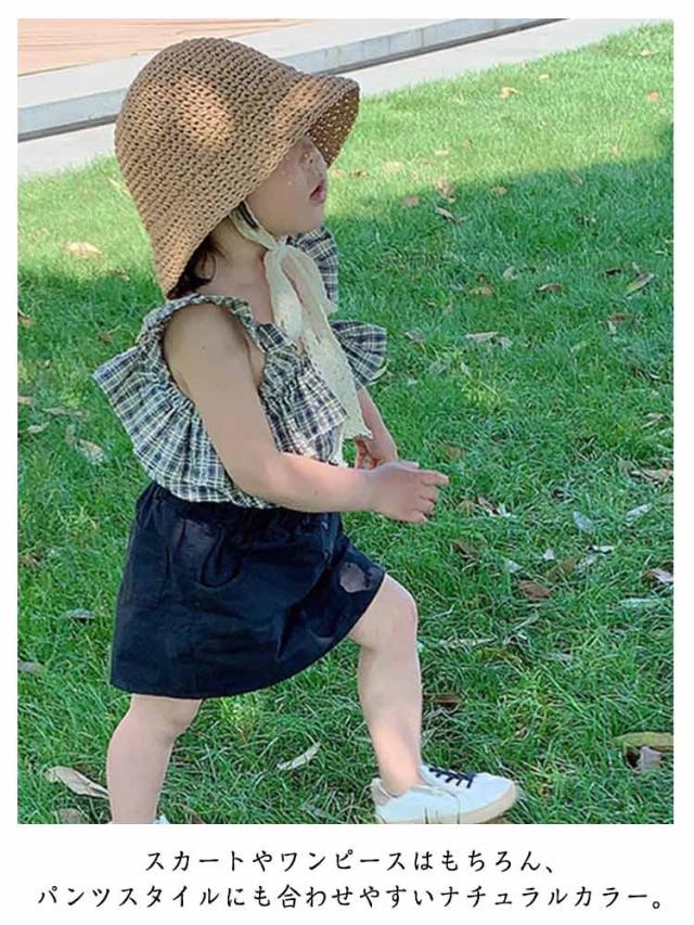 ベビー 麦わら帽子 女の子 キッズ ナチュラル 日よけ帽子 麦わらハット 紫外線対策 夏用 ペーパーハット リボン レース あご紐 キッズ帽子 ベビー帽子 子供帽子 赤ちゃん お出かけ お散歩 レジャー 旅行 出産祝い プレゼント 送料無料