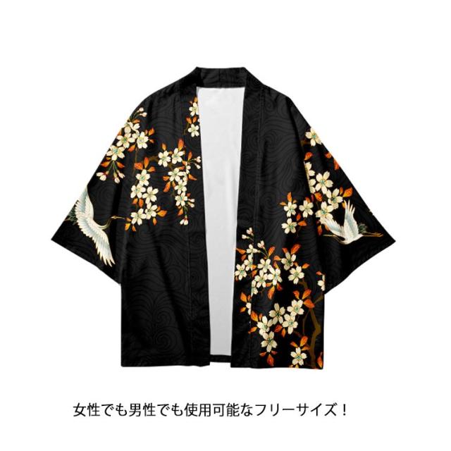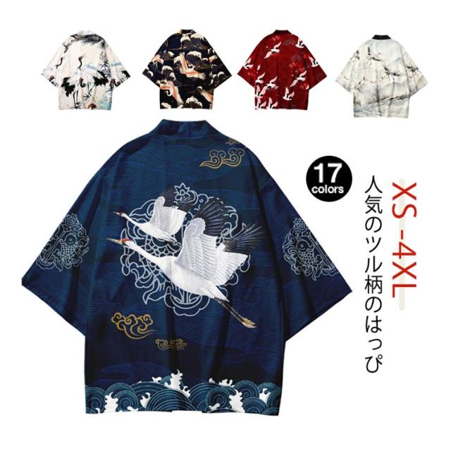 送料無料 法被 ツル 桜 夏祭り 法被 ハッピ 大人 子供 キッズ 寺 神社 和柄 羽織り 和装 カーディガン 浴衣 着物 はっぴスタイル お祭り衣装 半纏 半被 半天 袢天 羽織 個性的 イベント はんてん 大人用 子供用 男女兼用 かっこいい かわいい