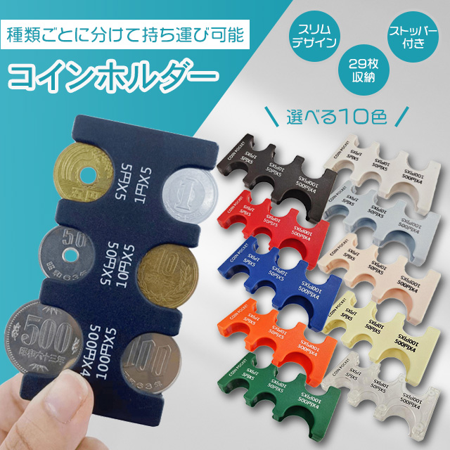 6種類 合計29枚の硬貨を種類ごとに分けて持ち運びができるコインホルダー。