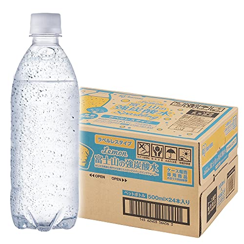 アイリスオーヤマ 炭酸水 500ml ×24本 レモン ラベルレス 富士山の強炭酸水 炭酸飲料 ペットボトル 静岡県産 ケース 500ミリリット