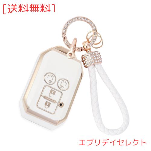 [ZANEKO] キーケース適合スズキ新型スペーシアキーカバー スペーシアカスタム ソリオ フレアワゴン スマートキーケース 軽量 (ホワイト)