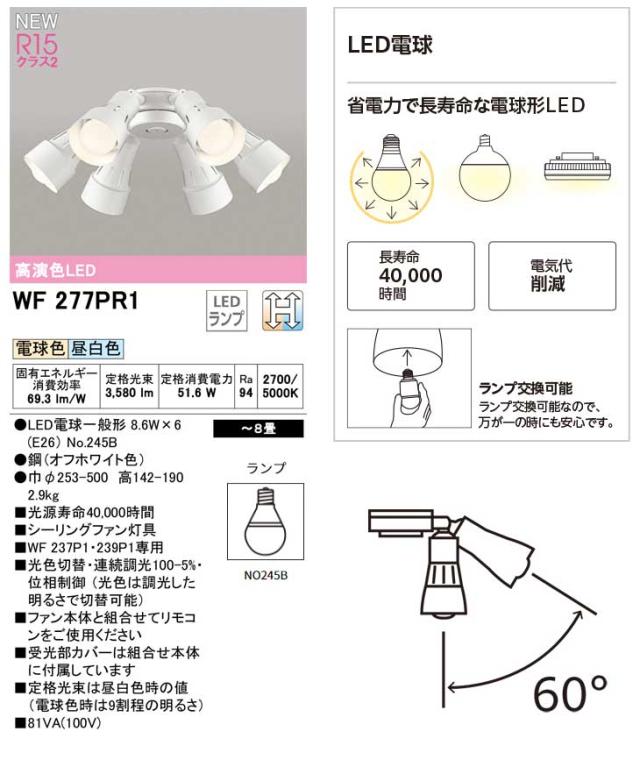 WF277PR1 シーリングファン 灯具[可動型スポットタイプ・6灯]〜8畳用 スペック情報