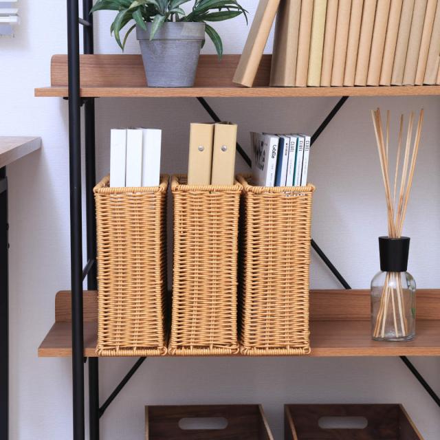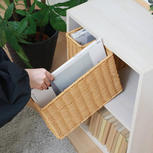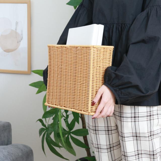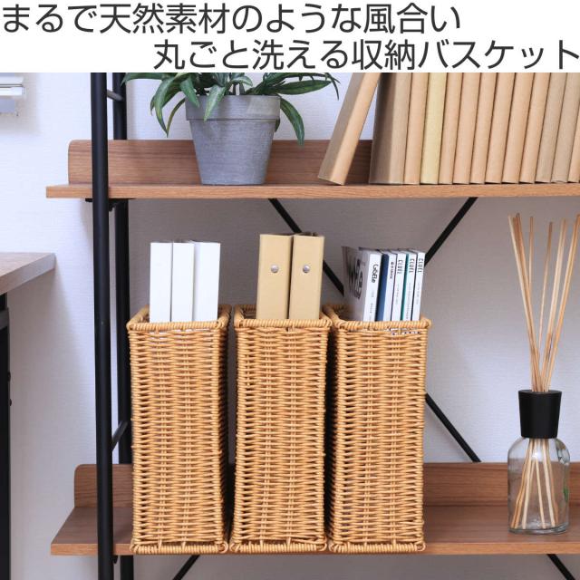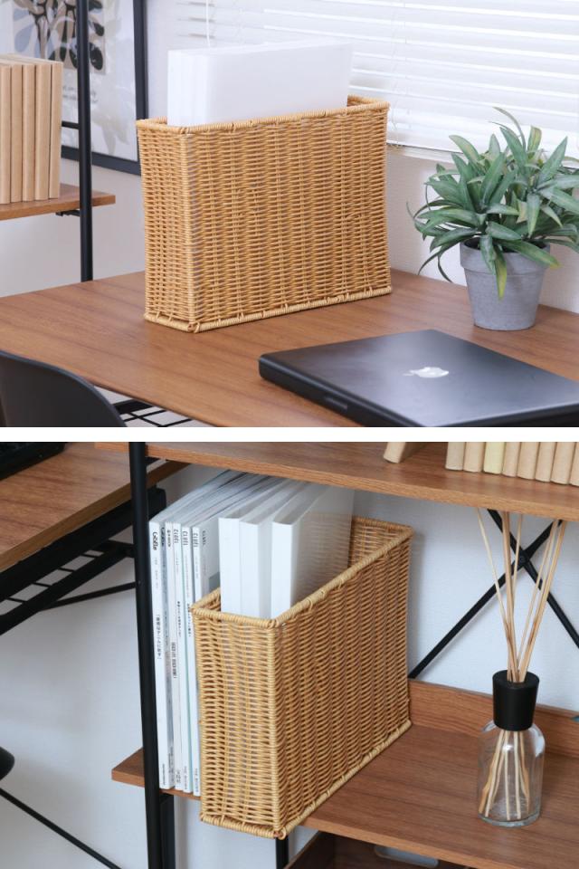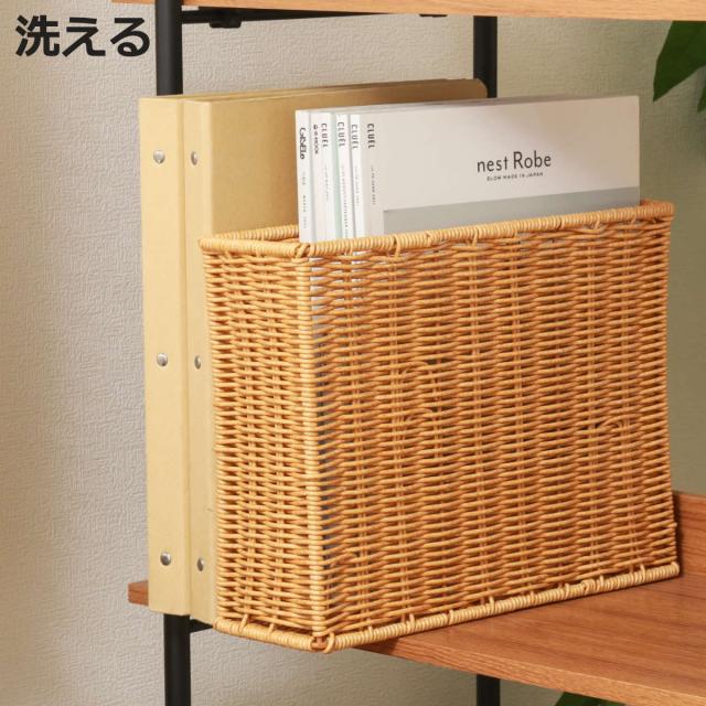 ファイルケース 洗える隙間収納 水洗い ( 幅11×奥行32×高さ24cm A4サイズ かご カゴ 手編み 収納 天然素材風 インナーボックス 洗える 収納ケース 本 おしゃれ リビング 雑誌 ファイル 書類 卓上 デスク周りスリム 衛生的 )