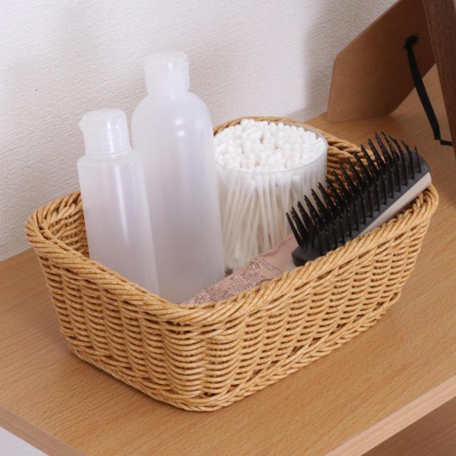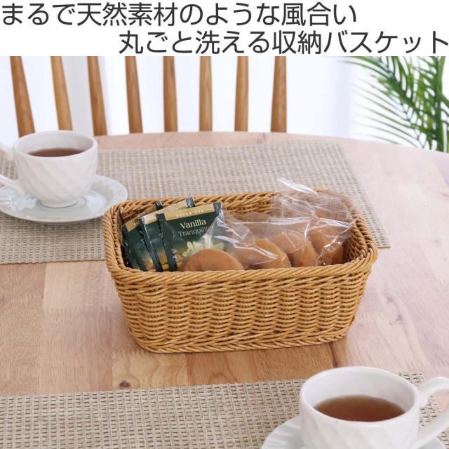 バスケット 洗えるバスケット スクエア M かご 水洗い ( 幅23×奥行17×高さ8cm カゴ 手編み 収納 天然素材風 小物収納 収納かご 洗える 収納ケース おしゃれ リビング 洗面所 キッチン 玄関 卓上 衛生的 コスメ 小物 )