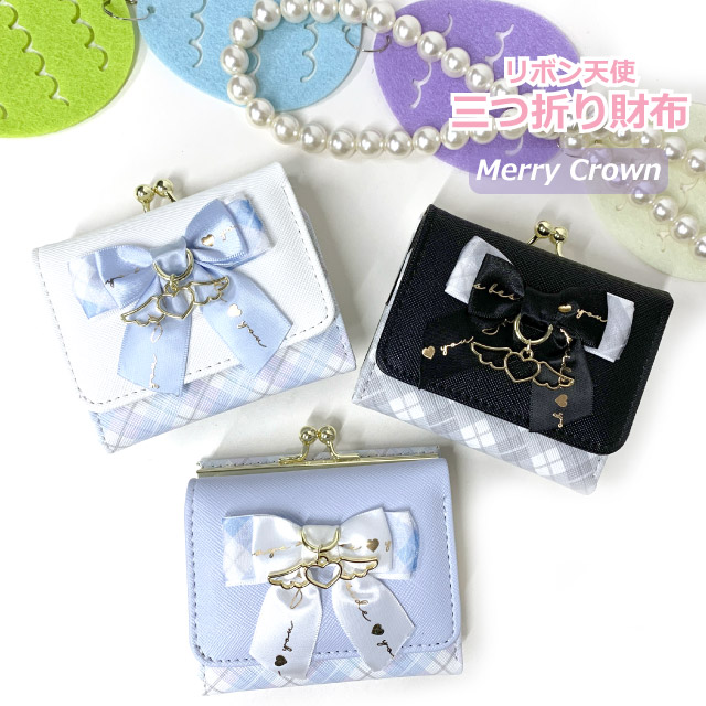 財布 女の子 小学生 Merry Crown リボン天使 ミニ口金財布 mce-305 キッズ ミニ財布 女の子 がま口財布 中学生 高校生 修学旅行 人気 三つ折り 小さい財布 かわいい コンパクト 折りたたみ お 財布 さいふ 三つ折り財布 黒 水色 白 使いやすい 3つ折り 天使 プレゼント 韓国