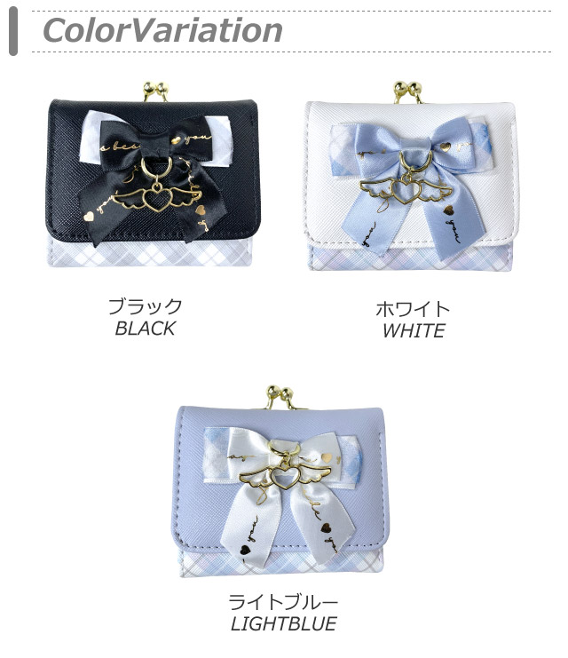 ■イメージ・その他:おしゃれ お洒落 人気 人気 ランキング 可愛い かわいい 使いやすい 大容量 白 ホワイト 水色 黒 青 ブラック ブルー りぼん リボン 天使 エンジェル ハート 大人可愛い 大人かわいい 大人っぽい がま口 韓国 キッズ財布 シンプル 小さめ ミニ ミニサイズ包装 無料ラッピング ラッピングバッグ
