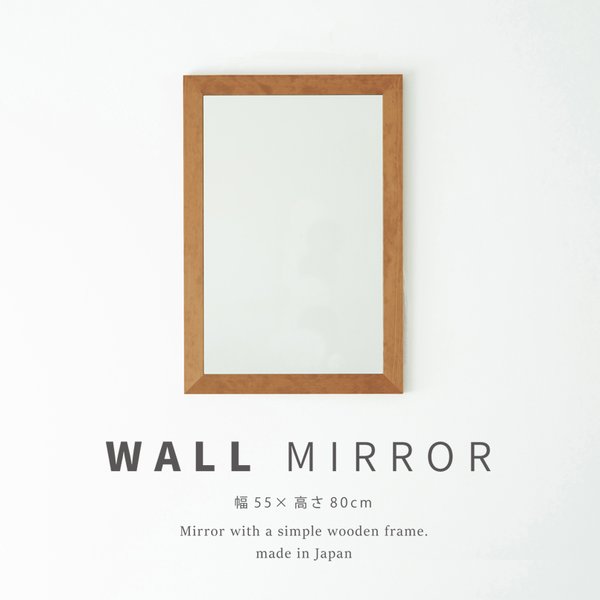 幅広枠ウォールミラー(55×80)(ハニーブラウン/茶) 天然木 姿見鏡 ワイド 高級感 木製 飛散防止加工 壁掛け 北欧風 ヴィンテージ 韓国インテリア 玄関 トイレ 洗面 日本製 完成品 NK-33