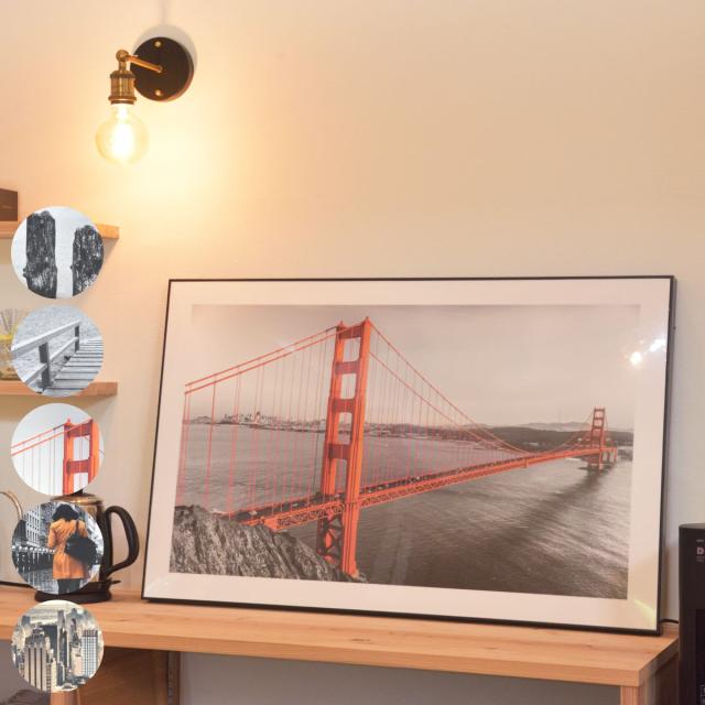 アートパネル 60×90cm 風景 ( グラフィックパネル デザインボード 抽象 モダン フレーム付き フォト 写真 インテリア 壁掛け 玄関 横 おしゃれ 海 飾り リビング 額 額入り 置き型 ゴールデンゲートブリッジ ビーチ 景色 )