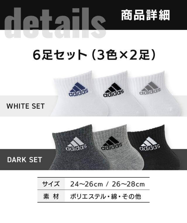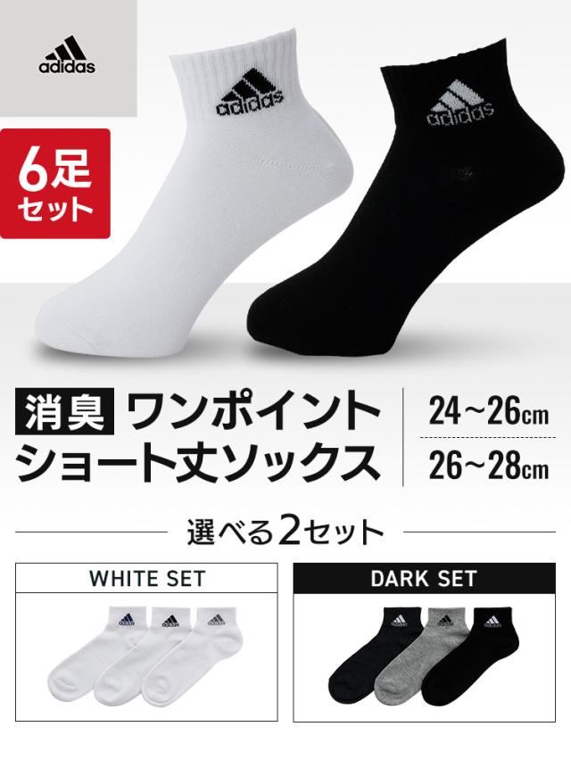 ソックス 靴下 ショート丈 アディダス 6P メンズ消臭ワンポイントショート丈 06076WVQ (メール便) 全2サイズ スニーカーソックス メンズ 消臭 6足セット adidas スニーカー ワンポイント スクール 黒 モクグレイ チャコール 男性 紳士 ジュニア 子供 運動 送料無料