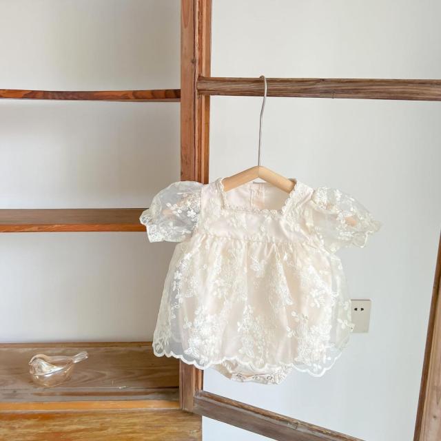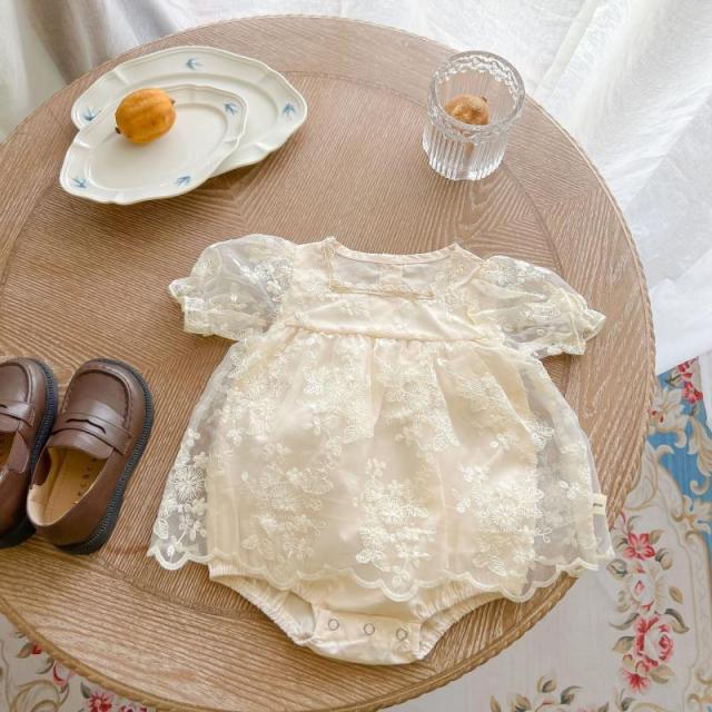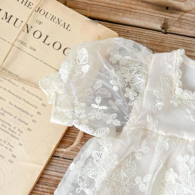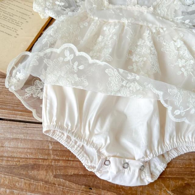 送料無料 ベビー ロンパース セレモニードレス 半袖 赤ちゃん 刺繍入り ワンピース ベビー服 春 夏 新生児ドレス 女の子 白 おしゃれ 可愛い 出産祝い 退院