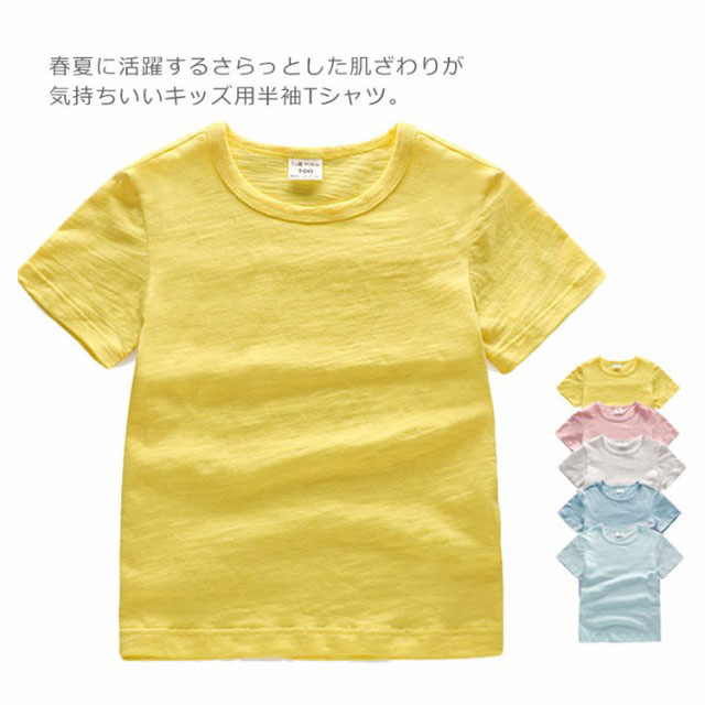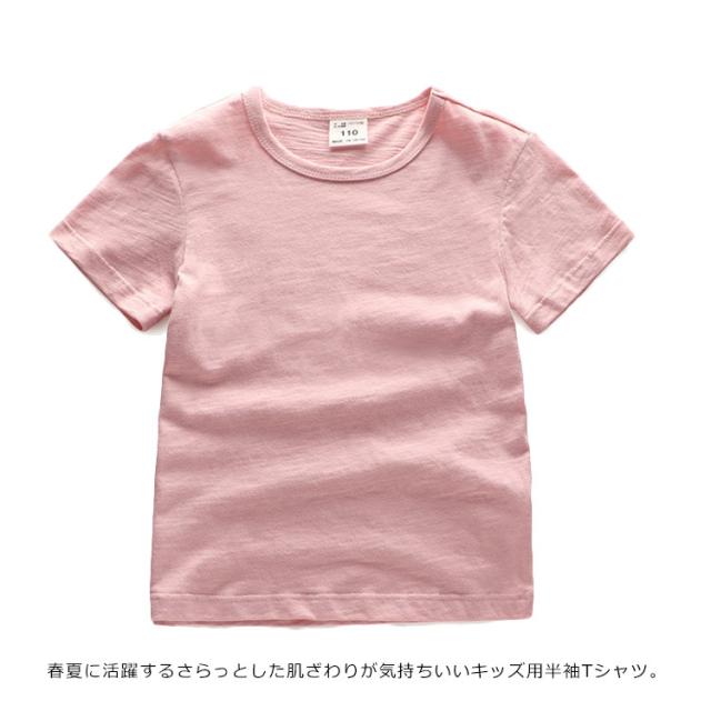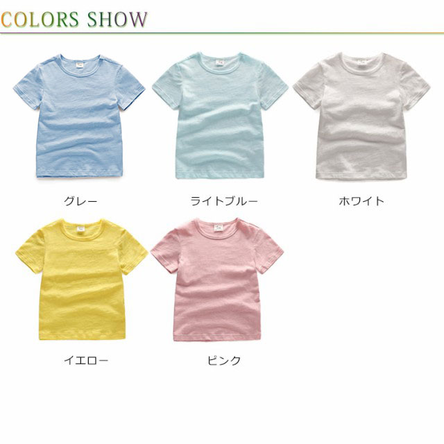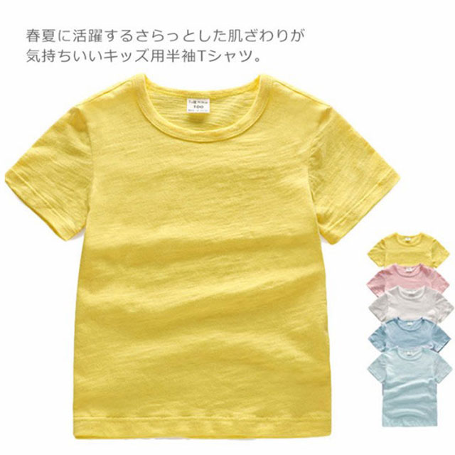 送料無料 Tシャツ キッズ tシャツ 女の子 半袖 男の子 半袖tシャツ 子供 トップス カットソー 男女兼用 ベビー服 クルーネック 無地 コットン100% 綿100% 薄手 通気性 春夏 春 夏