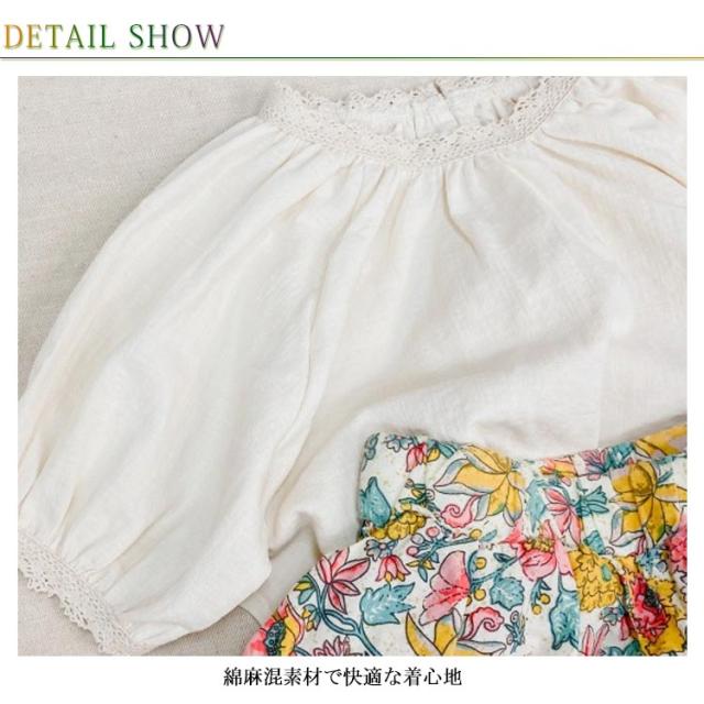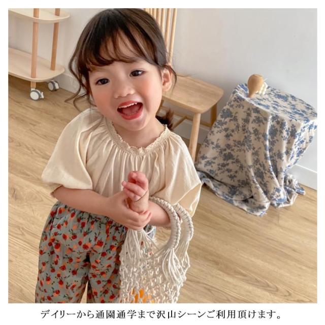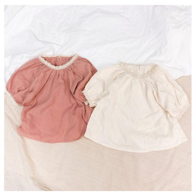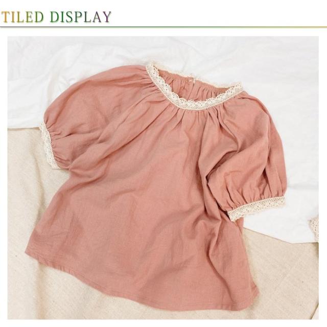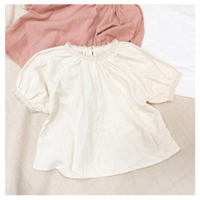 | 可愛い女の子用綿麻風半袖ブラウス 首回りと袖口ギャザー寄せてレース付けデザイン 後襟ぐり着脱しやすいスリットデザイン 綿麻混素材で快適な着心地 シンプルでコーディネートしやすい デイリーから通園通学まで沢山シーンご利用頂けます。 | |