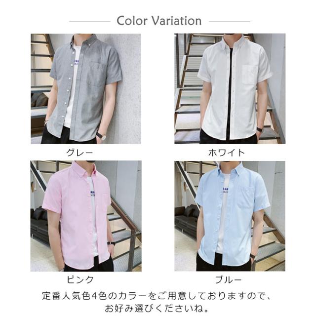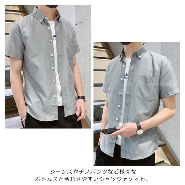 シャツ メンズ 半袖 シャツ ジャケット オックスフォード 夏服 細身 タイト シンプル きれいめ エレガント