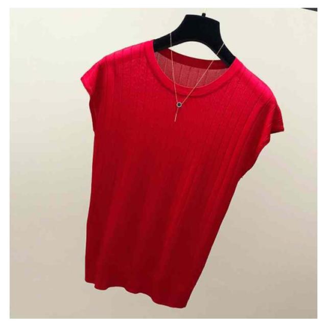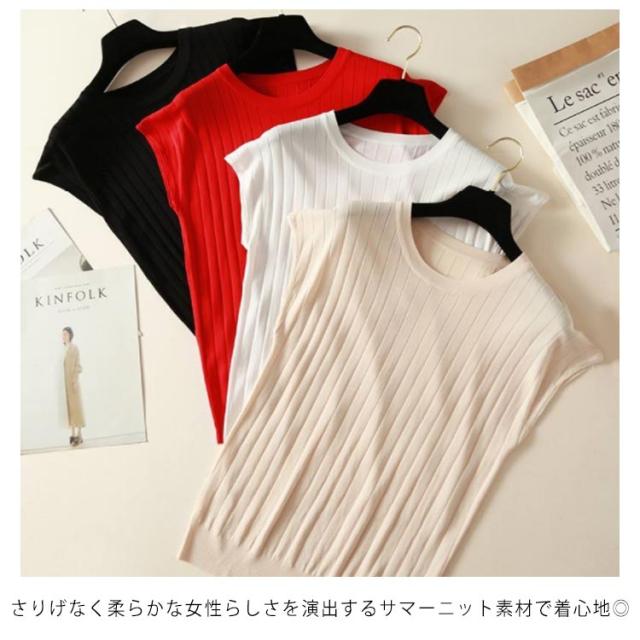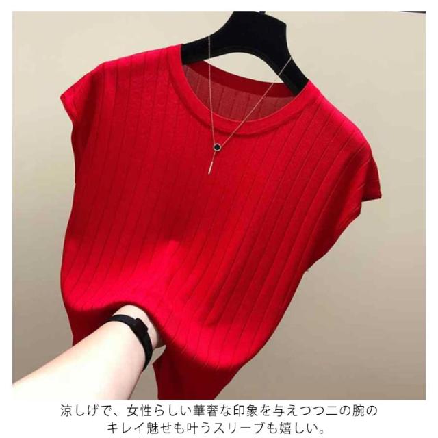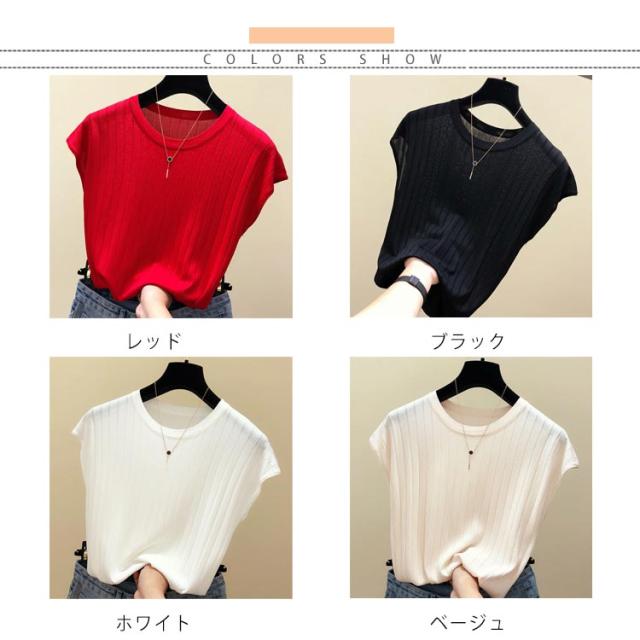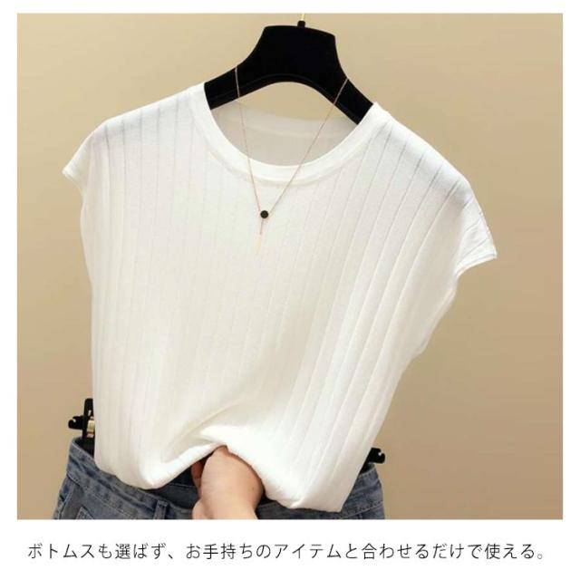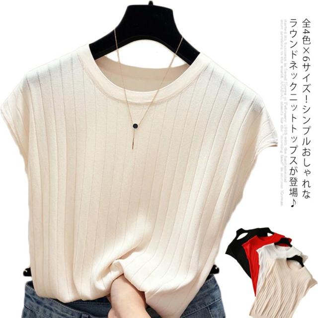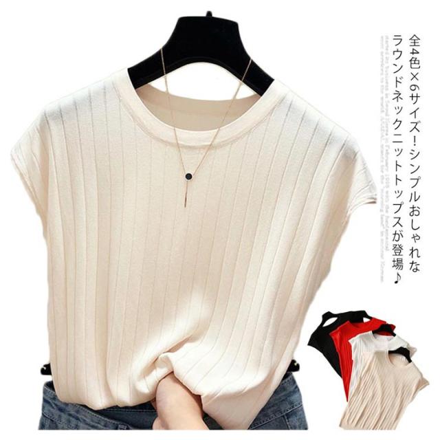 全4色×6サイズ!フレンチスリーブ トップス サマーニット ニットトップス ラウンドネック 半袖ニット フレンチスリーブニット シンプル 無地 春夏 夏 大きサイズ おしゃれ 可愛い 送料無料