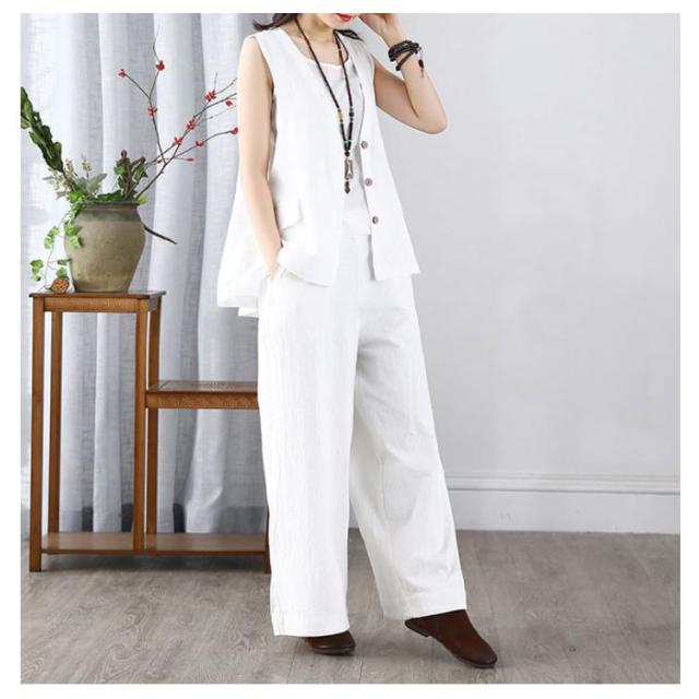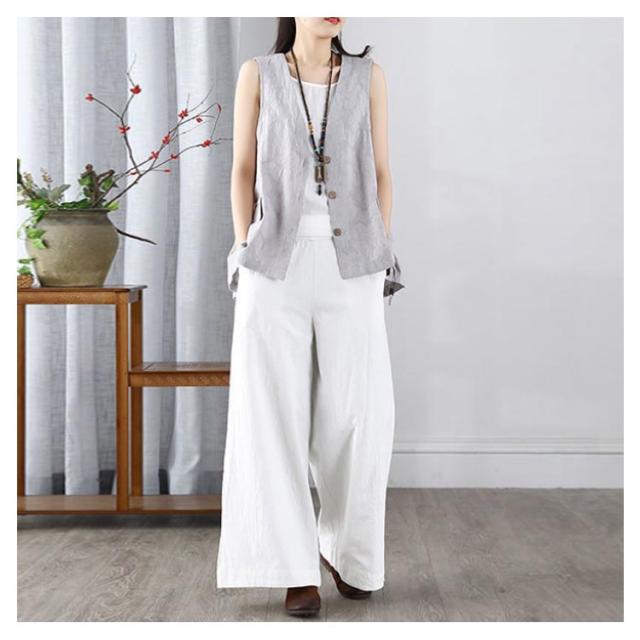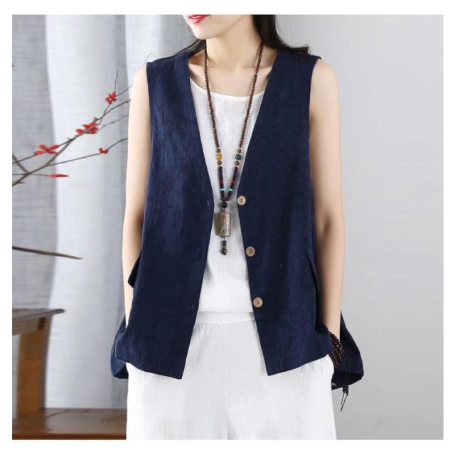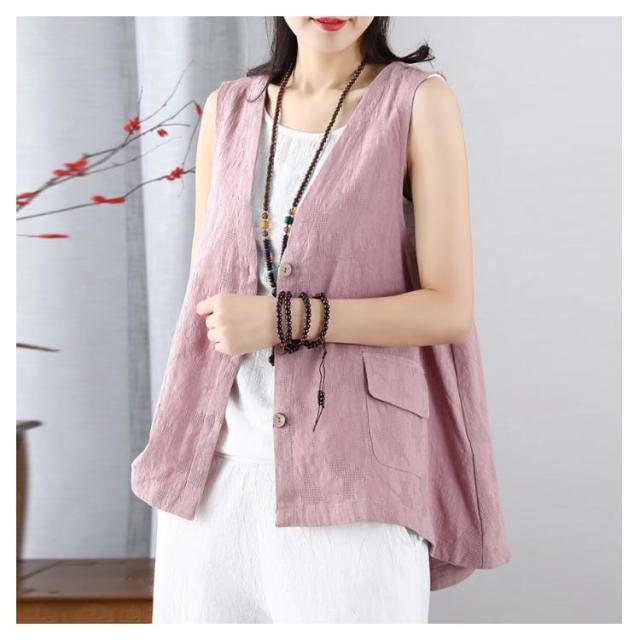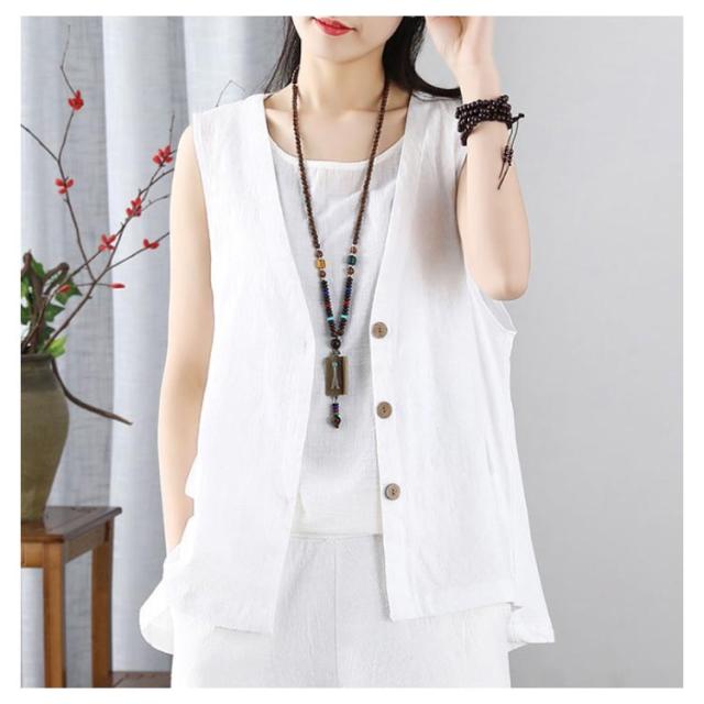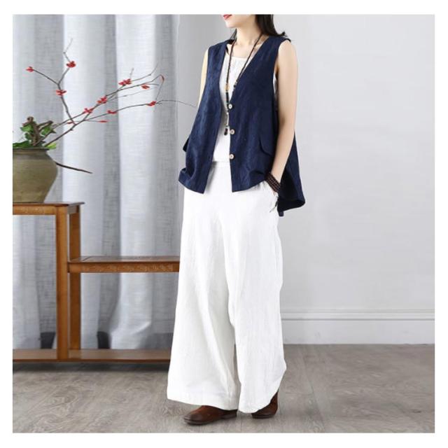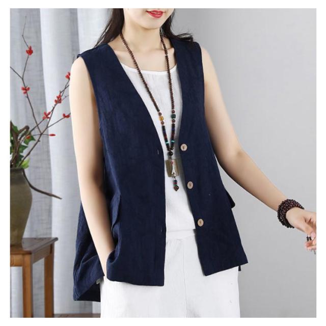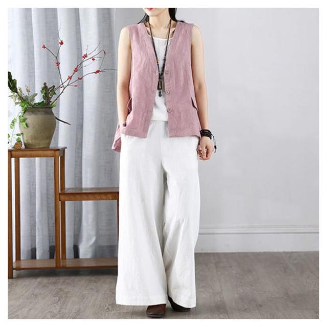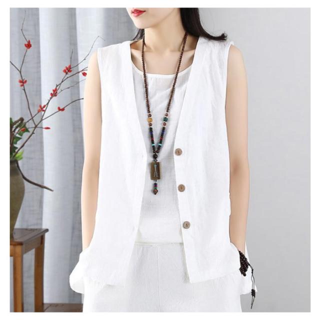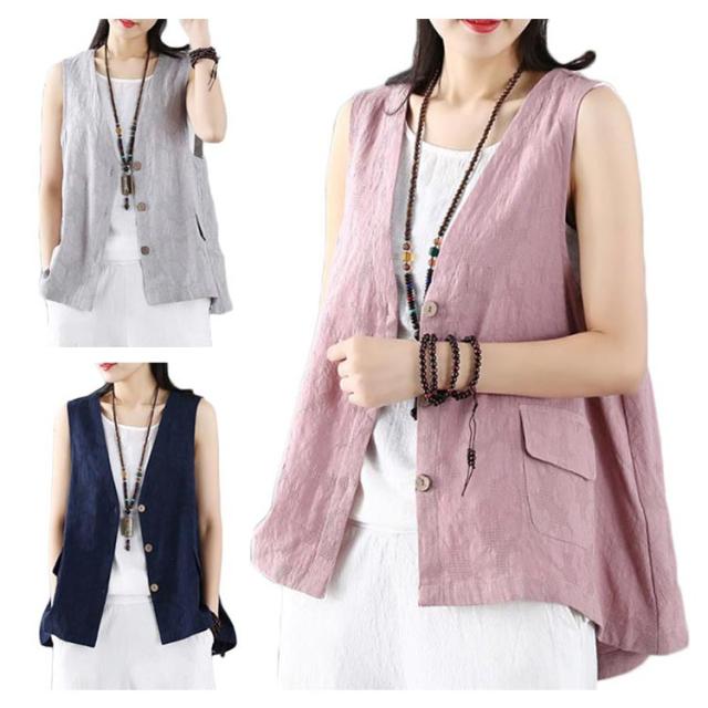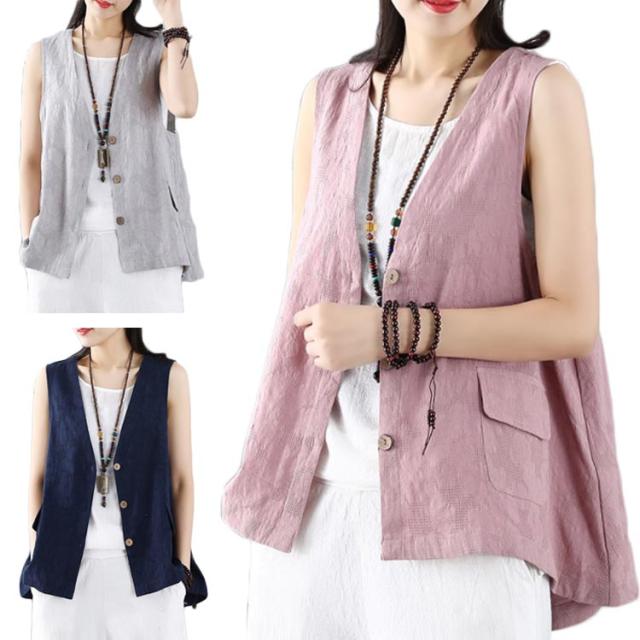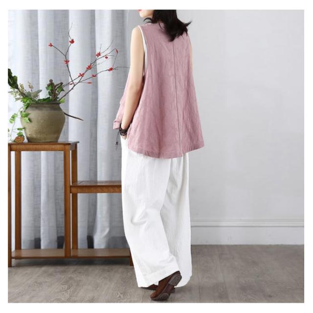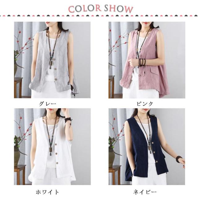 レディース リネンベスト 送料無料 サマーベスト ジレ トップス リネン 夏 ゆったり ノースリーブ 無地 アウトドア ワークベスト マニッシュ シンプル ナチュラル カジュアル