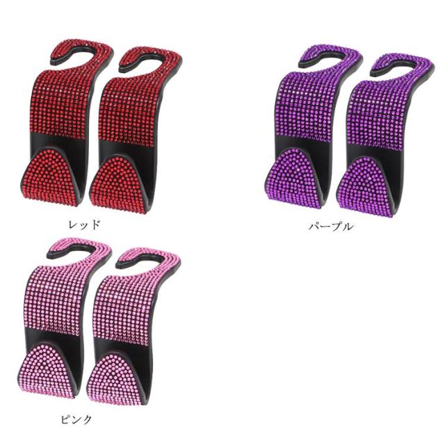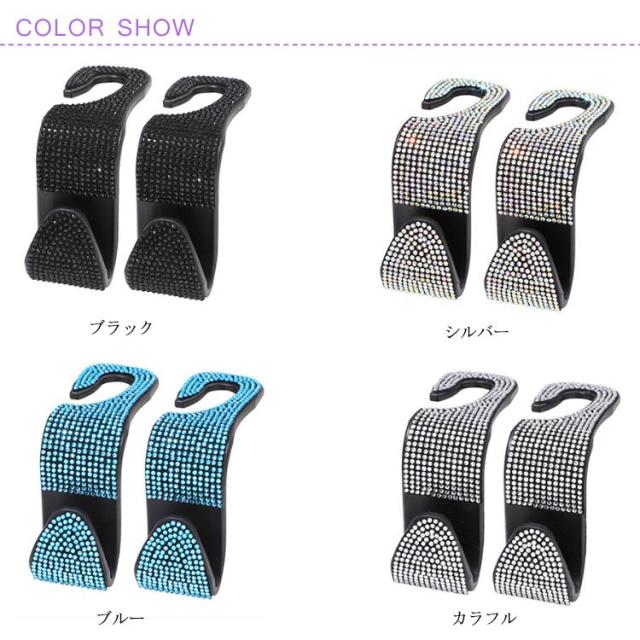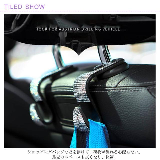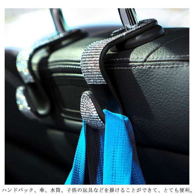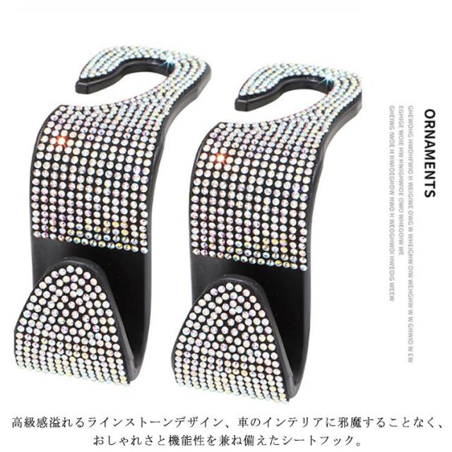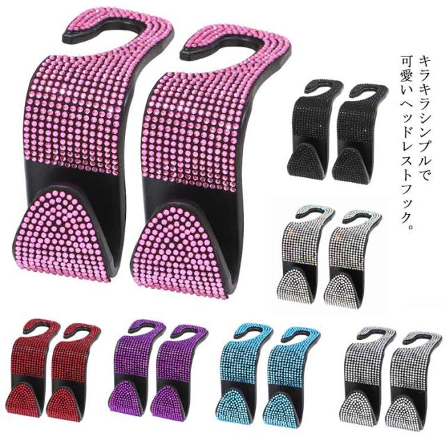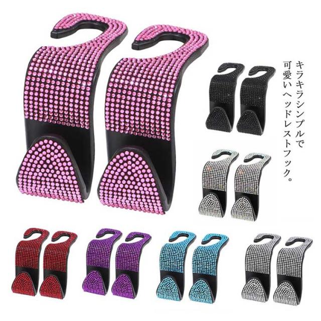 車用 フック ヘッドレストフック キラキラ 2個セット ラインストーン付き 荷物掛け 車収納 シートフック カーアクセサリー 傘掛け 車用品