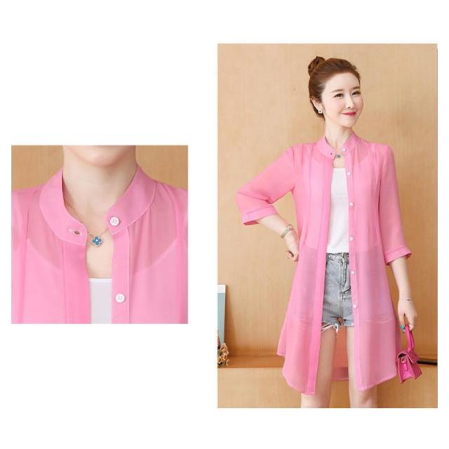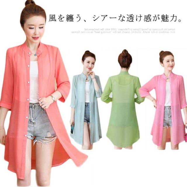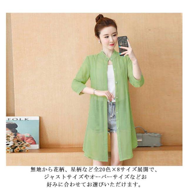 全20色 シースルー シャツ シアーシャツ ブラウス ロング カーディガン 花柄 無地 uvカット 7分袖 レディース 送料無料 春夏 羽織り