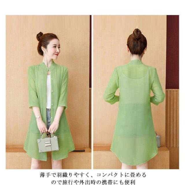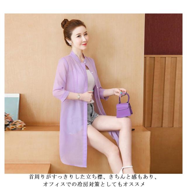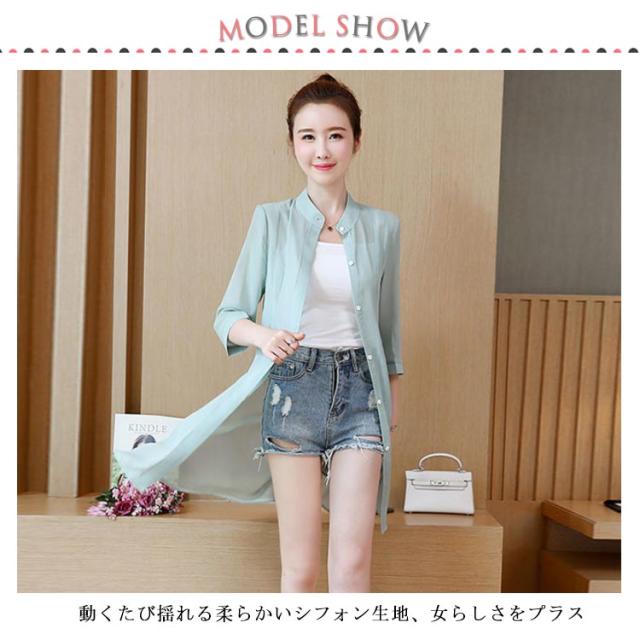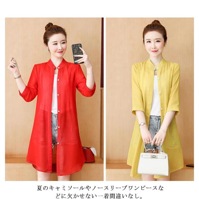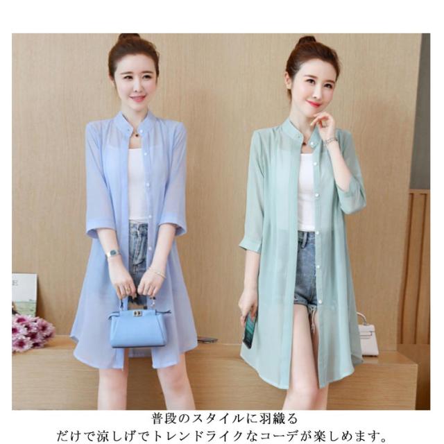 | 風を纏う、シアーな透け感が魅力。 普段のスタイルに羽織るだけで涼しげでトレンドライクなコーデが楽しめます。 気になるヒップや二の腕もさり気なくお洒落にカバーし、さらっとした生地で蒸し暑い季節も大活躍。 無地から花柄、星柄など全20色×8サイズ展開で、ジャストサイズやオーバーサイズなどお好みに合わせてお選びいただけます。 薄手で羽織りやすく、コンパクトに畳めるので旅行や外出時の携帯にも便利。 夏のキャミソールやノースリーブワンピースなどに欠かせない一着間違いなし。 首周りがすっきりした立ち襟、きちんと感もあり、オフィスでの冷房対策としてもオススメ。 | |