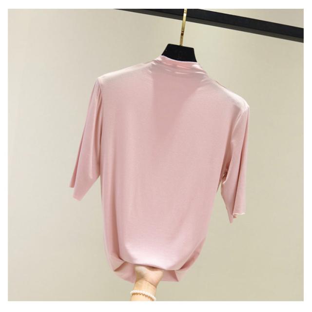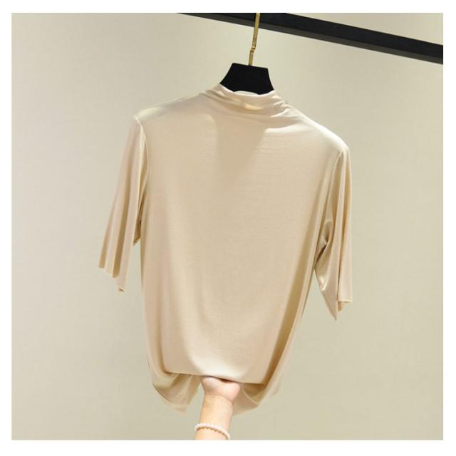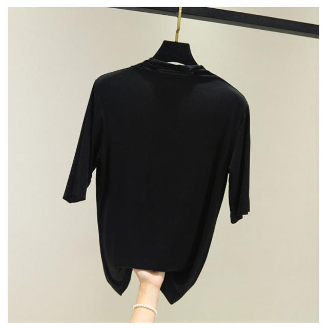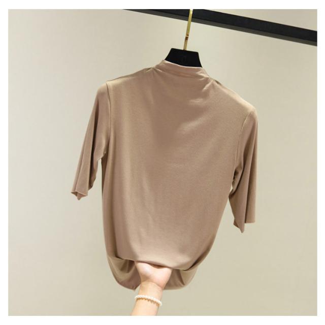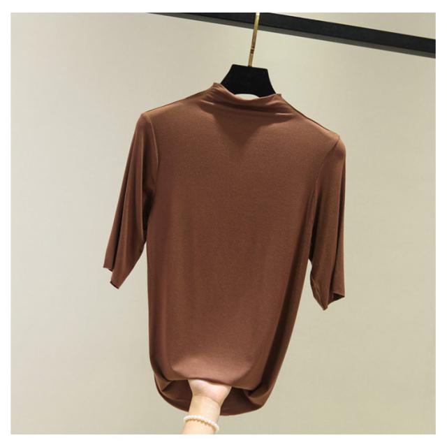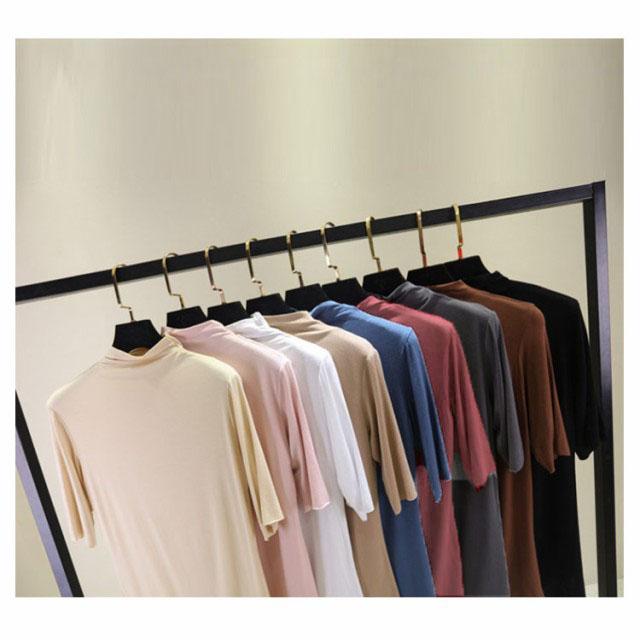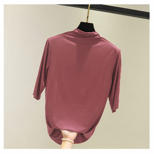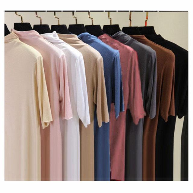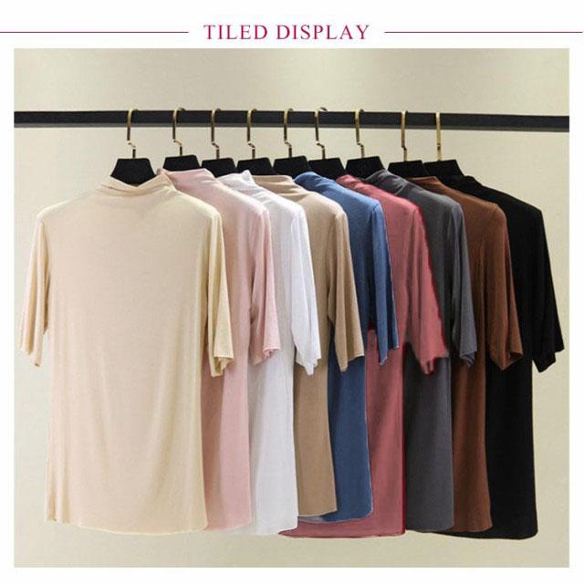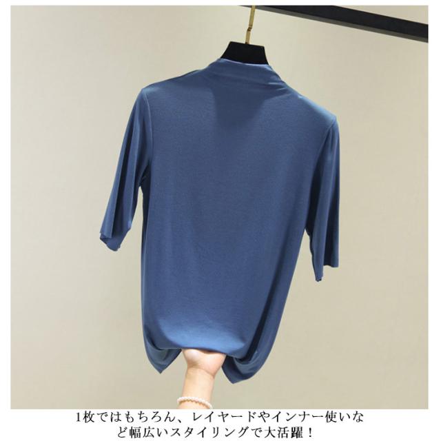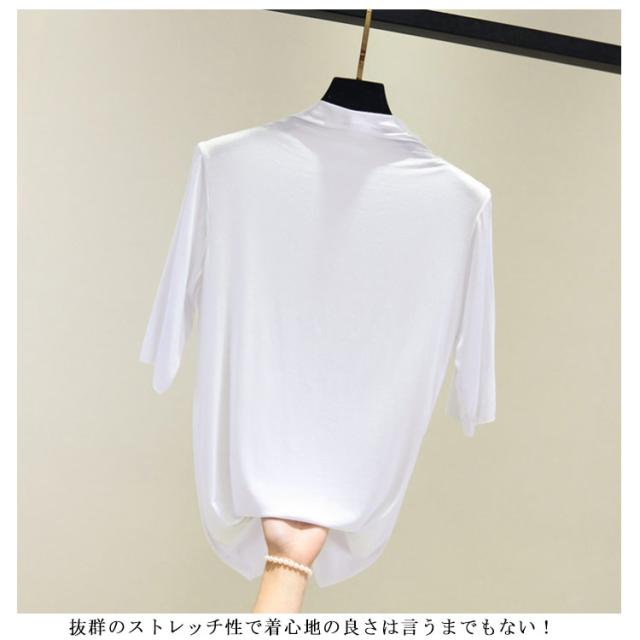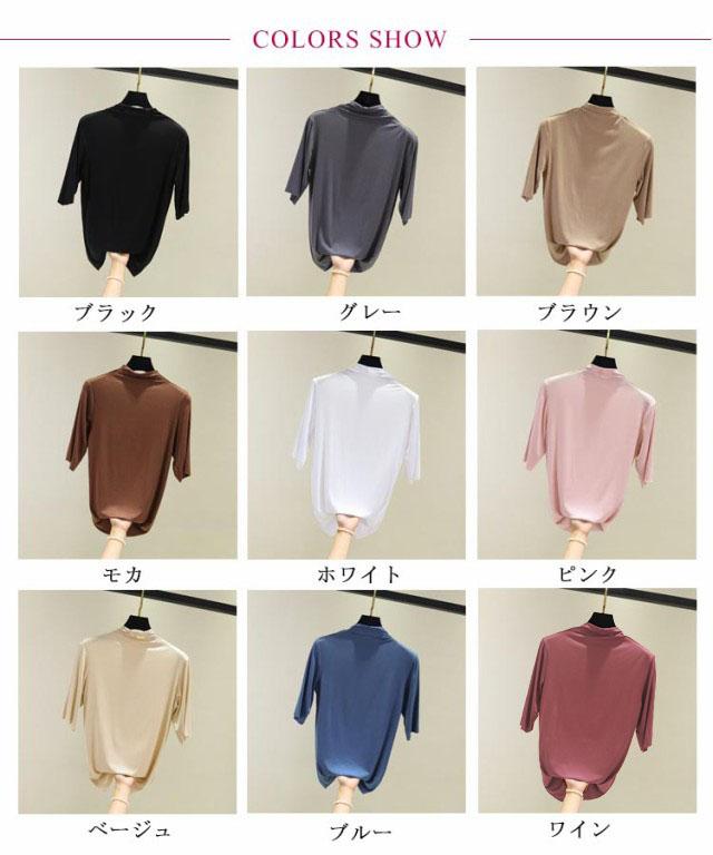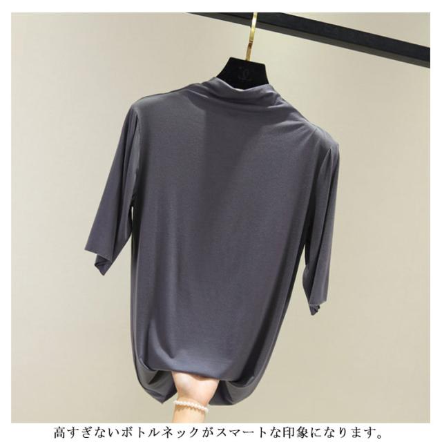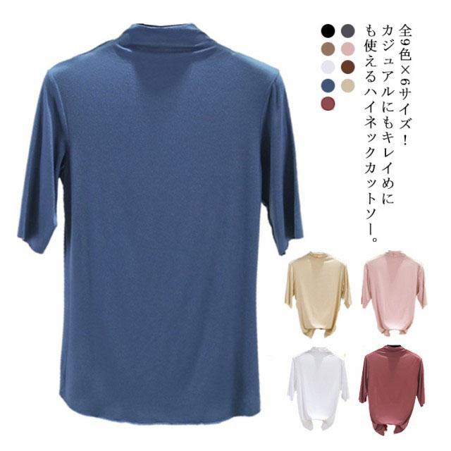 全9色×6サイズ!ハイネック tシャツ カットソー レディース 5分袖カットソー トップス ハイネックカットソー 五分袖 無地カットソー ボトルネック シンプル カジュアル キレイめ インナー 春 夏 秋 送料無料