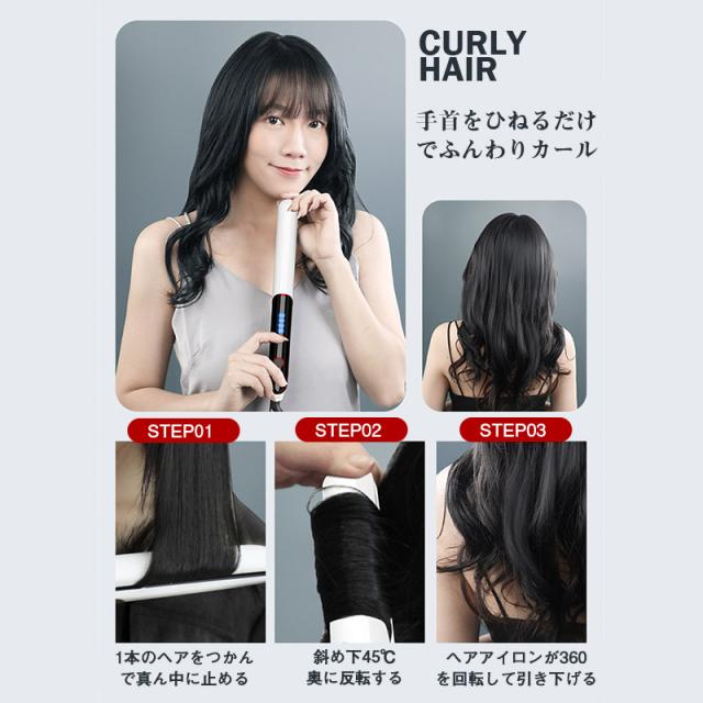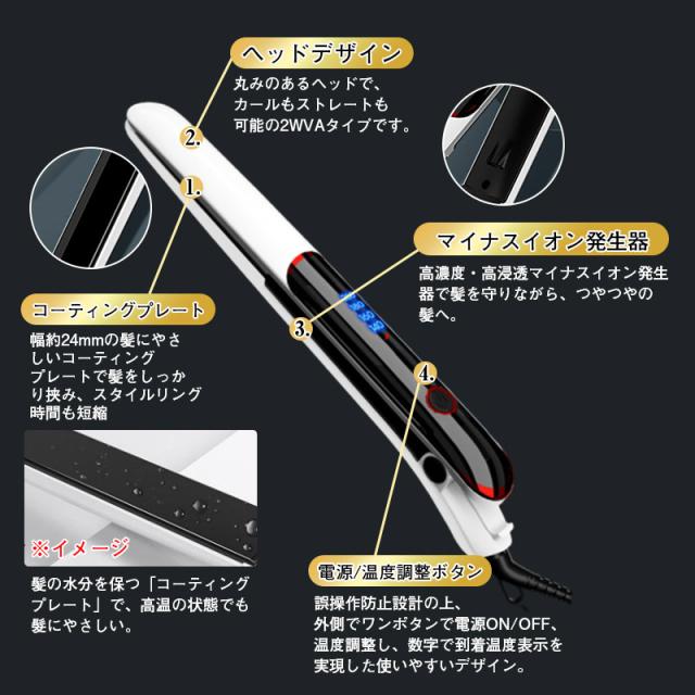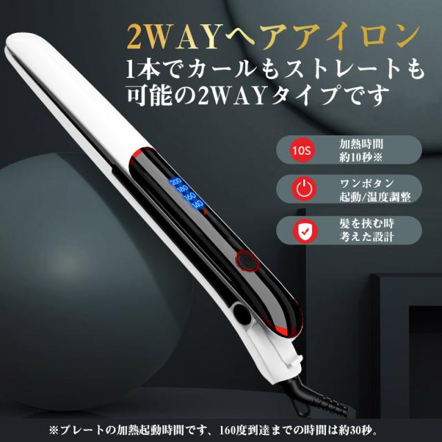 ヘアアイロン ストレート カール 2way カールアイロン プロ仕様 マイナスイオン 42W 急速加熱 温度調整 温度表示 コンパクト軽量 プレゼント 一年間保証