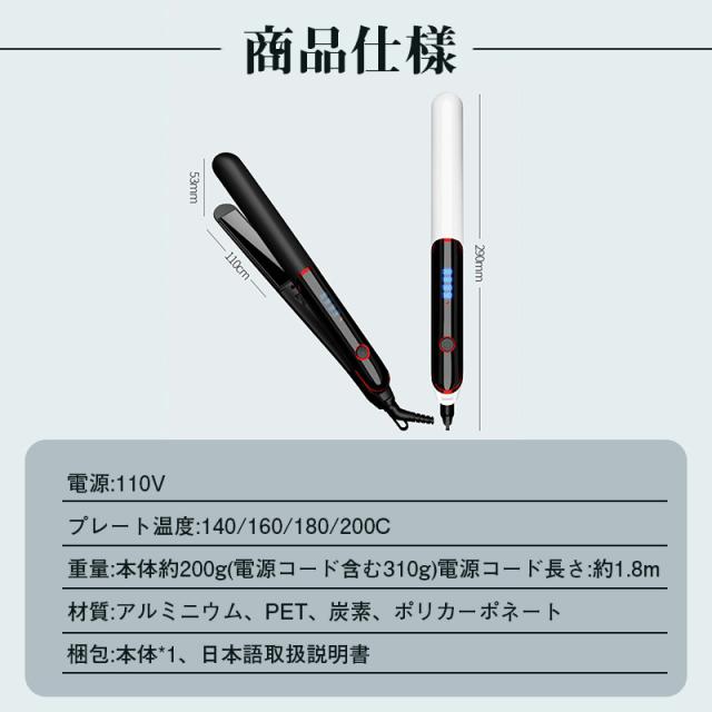 【内容】ヘアアイロン本体x1、日本語取扱説明書x1