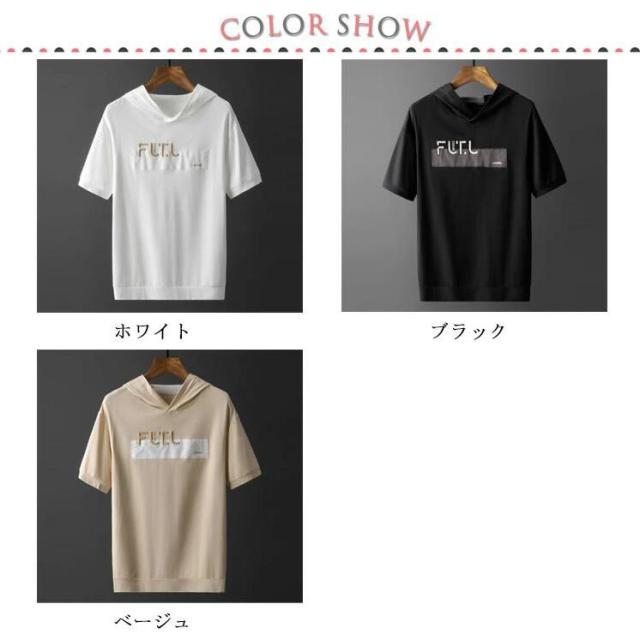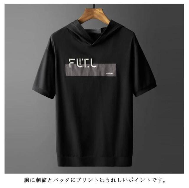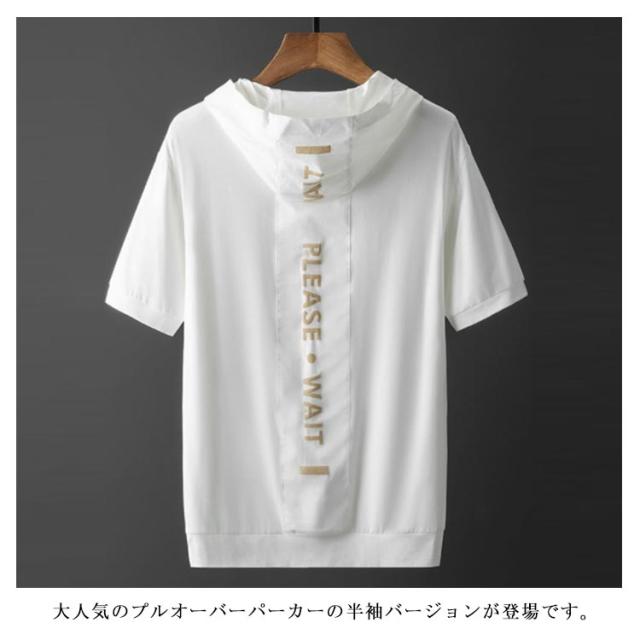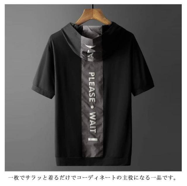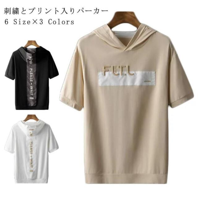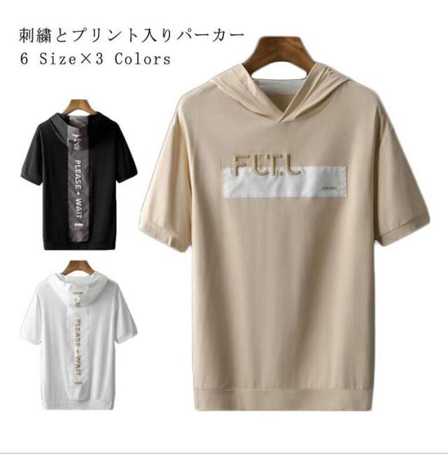 送料無料 パーカー メンズ 半袖 五分袖 カットソー メンズ Tシャツ 半袖 vネック クルーネック 刺繍 ロゴtシャツ おしゃれ 綿 春 夏 パーカー アメカジ