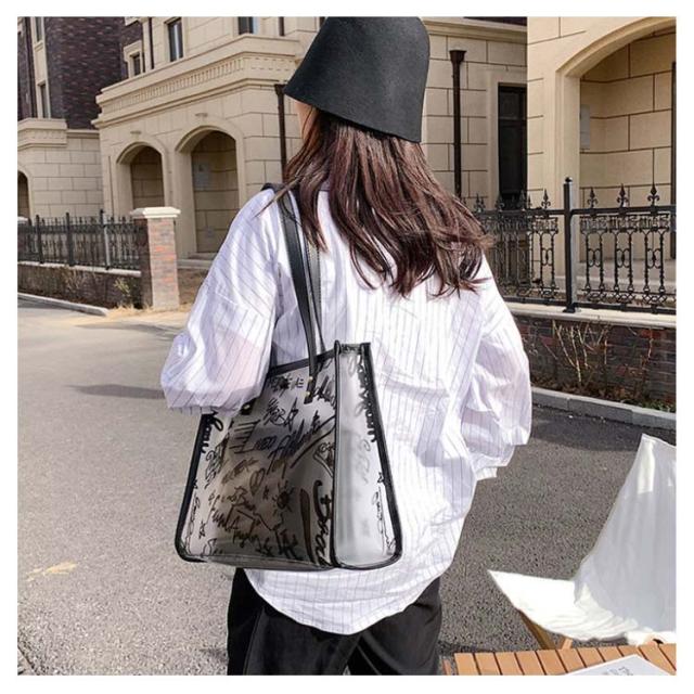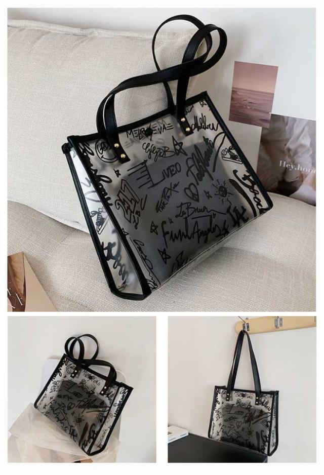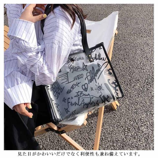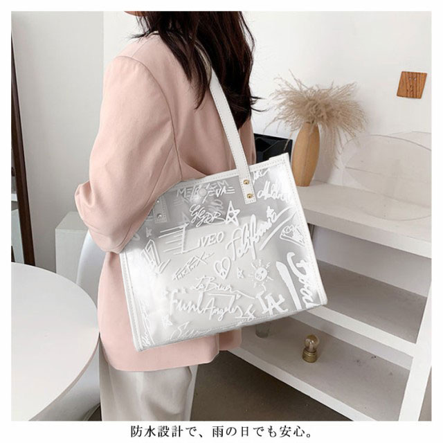 トートバッグ レディース クリアバッグ ハンドバッグ ビニールバッグ 透明バッグ 肩掛け 大容量 収納 お洒落 手提げ ポーチ付き 防水 お洒落 通勤 通学 プレゼント