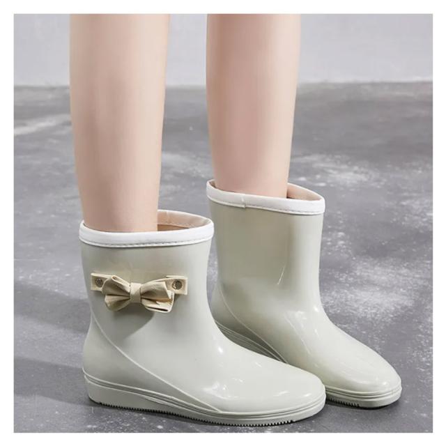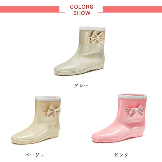 レインブーツ レディース リボン 雨靴 レインシューズ レディース ロングブーツ ロング ミドル レインブーツ 防水 シューズ ショートブーツ 防水 スノーシューズ 長靴 防水 雨具 梅雨 雨対策 ベージュ グレー ピンク