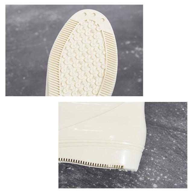 | 内側は足当たりのいいさらりとした布張りで雨の日でも蒸れにくく、肌にくっつく不快感もなし。 アンクルタイプで、どんなスタイルにも似合う 型押しと貼り付けで縫い目がなく雨が降っても、水が隙間から入り込まない | |