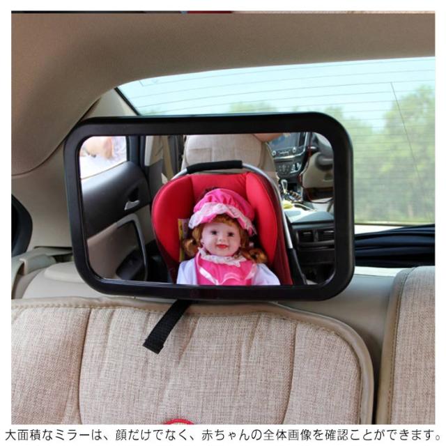 ベビーミラー 後部座席 インサイトミラー 車用 車内ミラー 曲面鏡 車載 大判 補助ミラー チャイルドシート ヘッドレスト 子供 赤ちゃん 360度回転 角度調整 安全 安心 車用品 カー用品 子ども