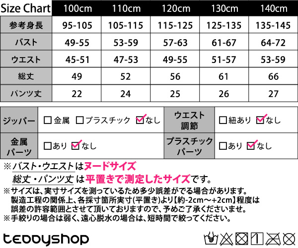 ※バスト・ウエストはヌードサイズ、総丈・パンツ丈は平置きで測定したサイズです。