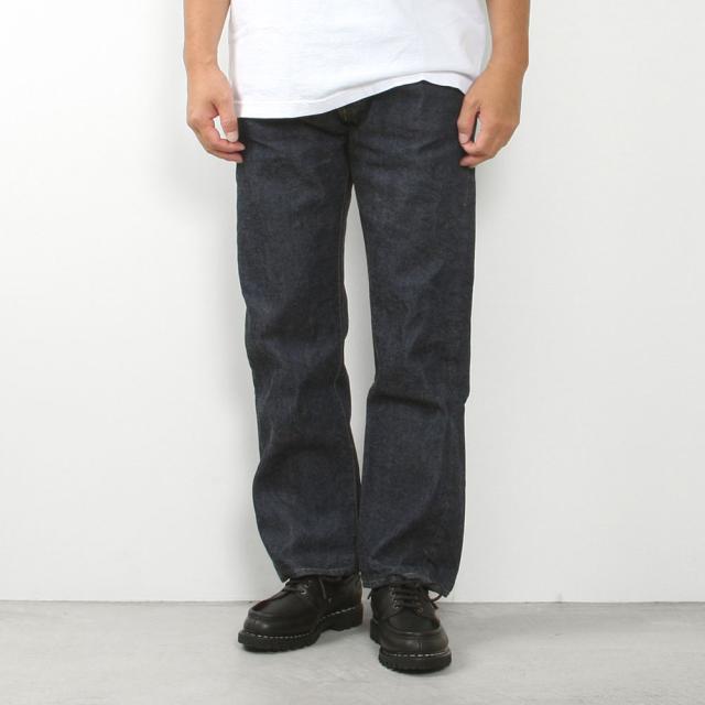 第二次世界大戦下のアメリカで、物資統制によってさまざまな仕様の簡素化が余儀なくされた通称“大戦モデル”。戦時中の生産背景から生まれたそれには、統一性のない多種多様なタイプが存在します。RESOLUTE では、月桂樹が刻印されたドーナツ型トップボタン、リベットなしのコインポケット、太めのベルトループといったヴィンテージ大戦モデル特有のディテールを踏襲。ウエスト位置を高めてヒップを包み込むようなシルエットに仕上げました。