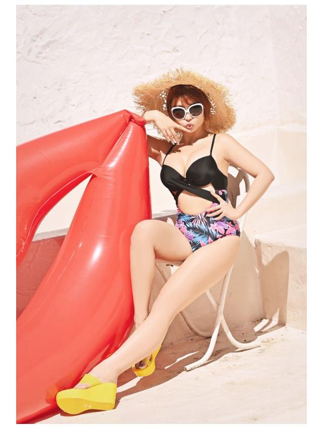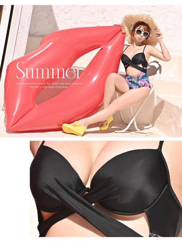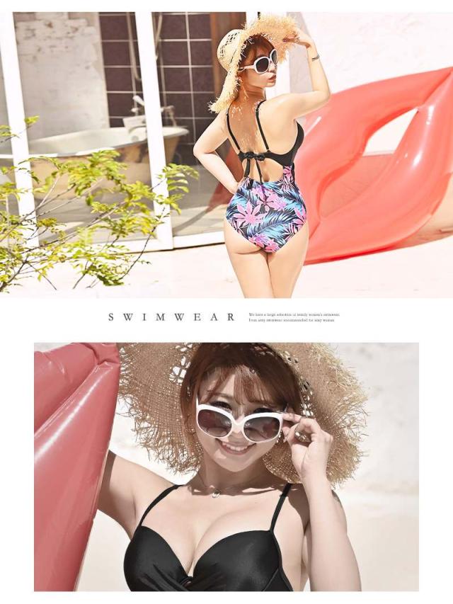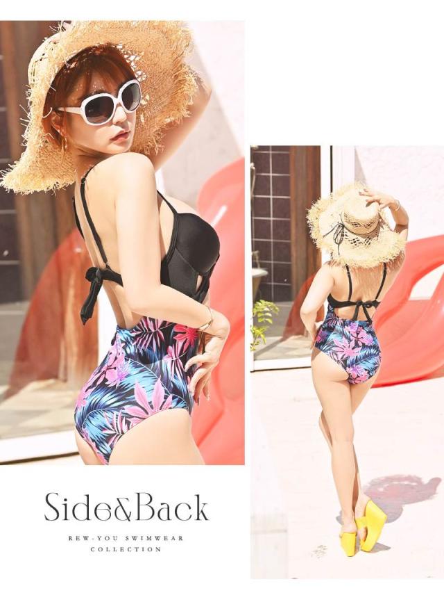 ☆ボタニカル柄×バイカラーが派手で可愛いレディース水着。